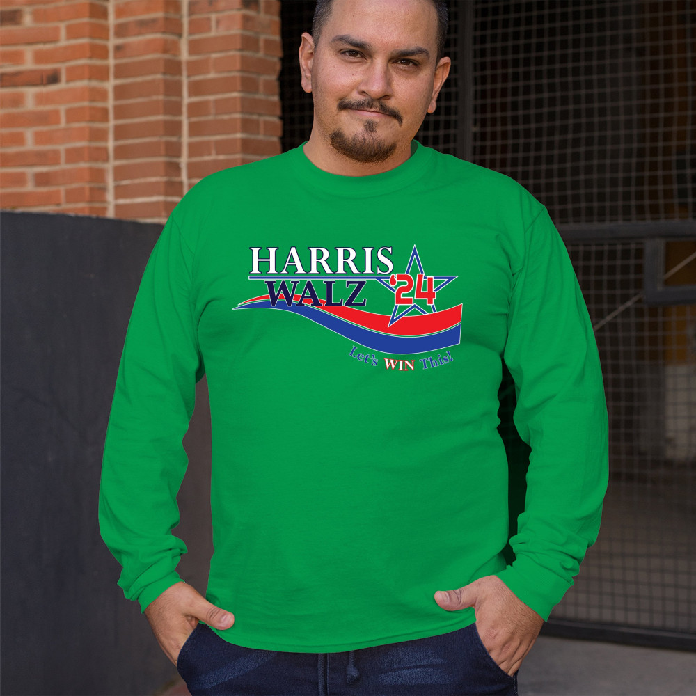 Express your support for Kamala Harris and Tim Walz in the 2024 election with this striking design. Perfect for those who advocate for LGBTQ+ rights, women's rights, and liberal values, it symbolizes the fight for a fair and just society. This design is ideal for rallies or daily wear to show your commitment to progress and equality. Stand out and show that you believe in a brighter, more inclusive future. Let's Win This!