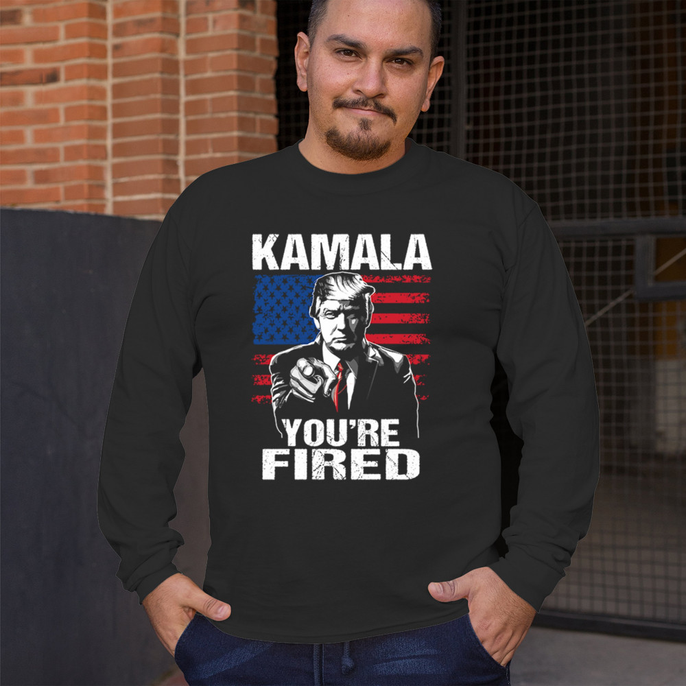 KAMALA YOU ARE FIRED TRUMP 2024 long sleeve t-shirt maga 45 47 america first black