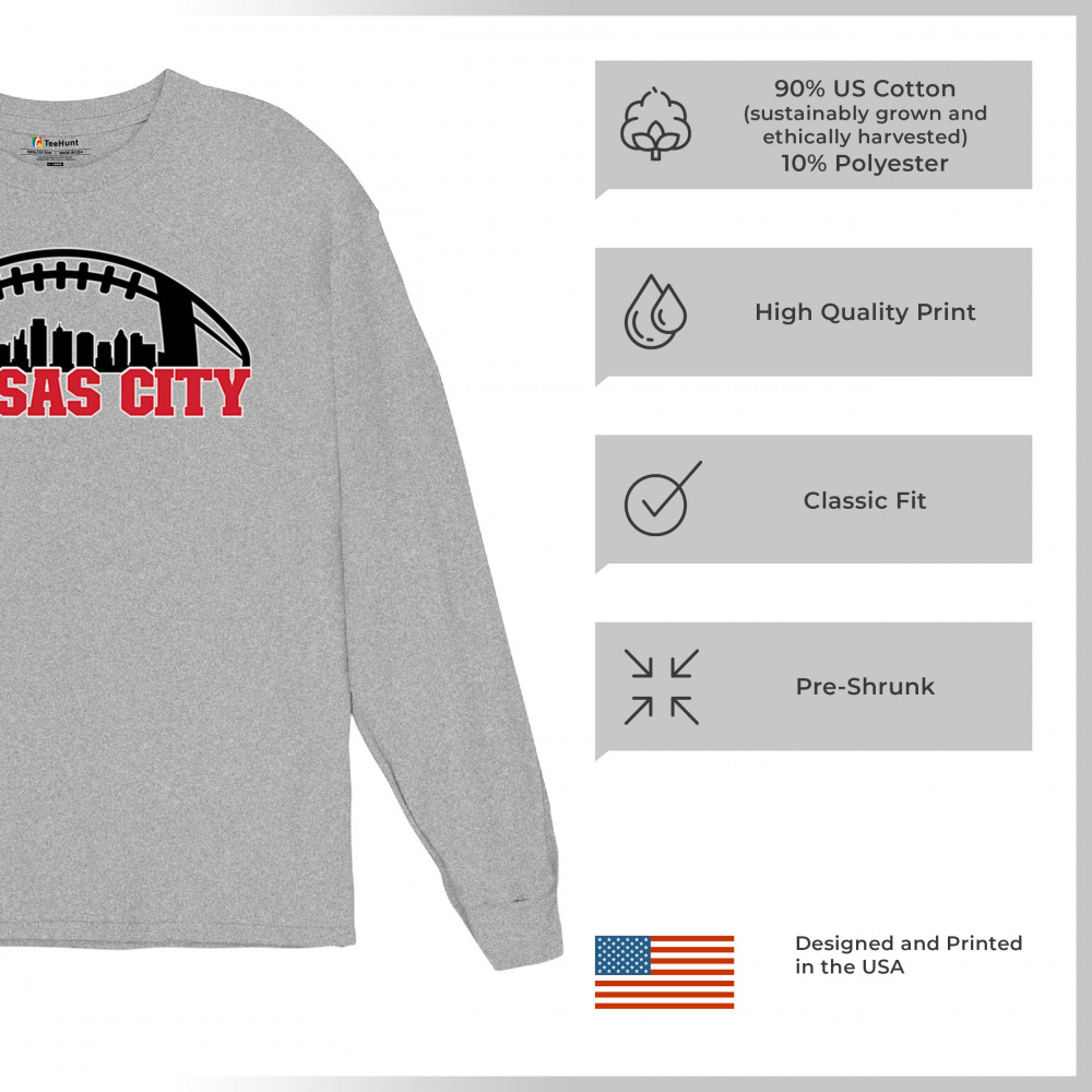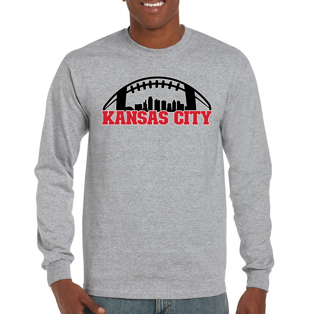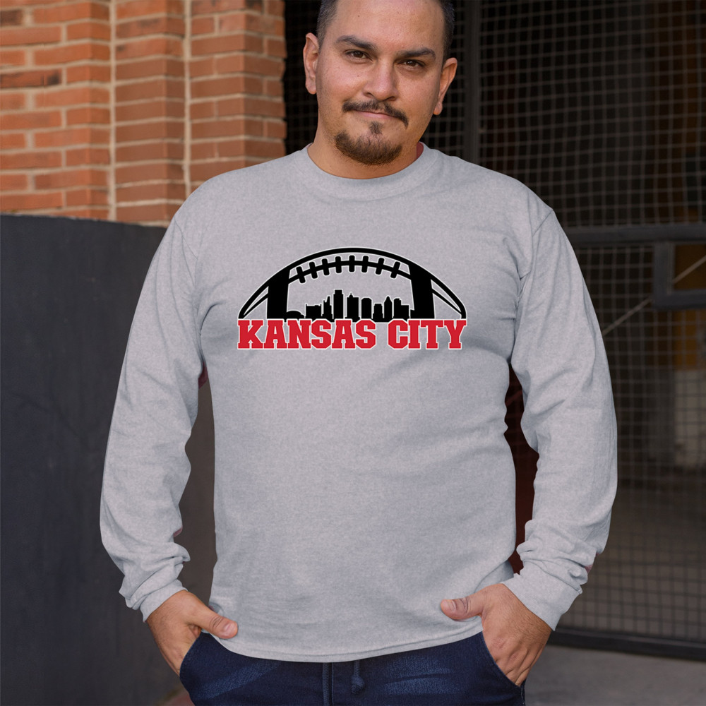 Celebrate Kansas City with a bold football design featuring the city skyline. Perfect for game days, tailgates, or proud sports fans.