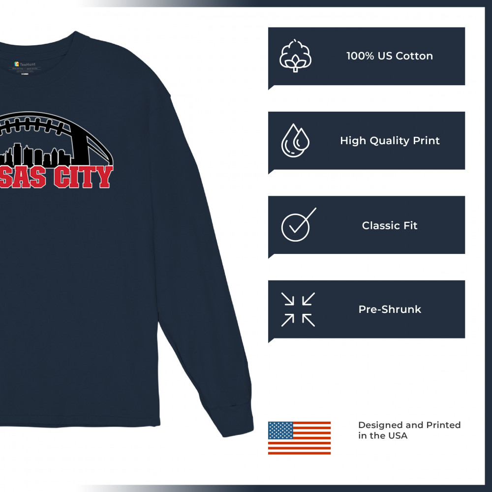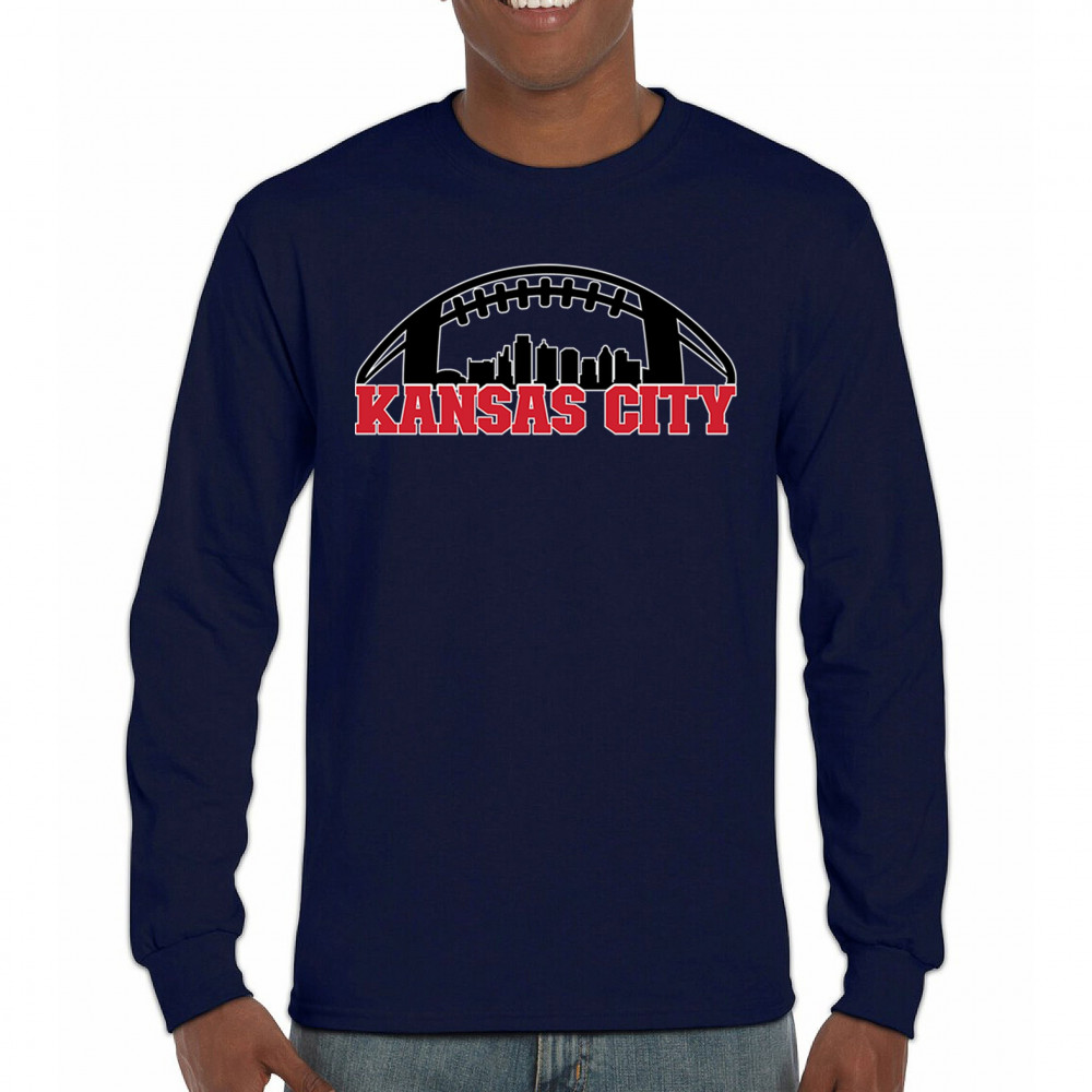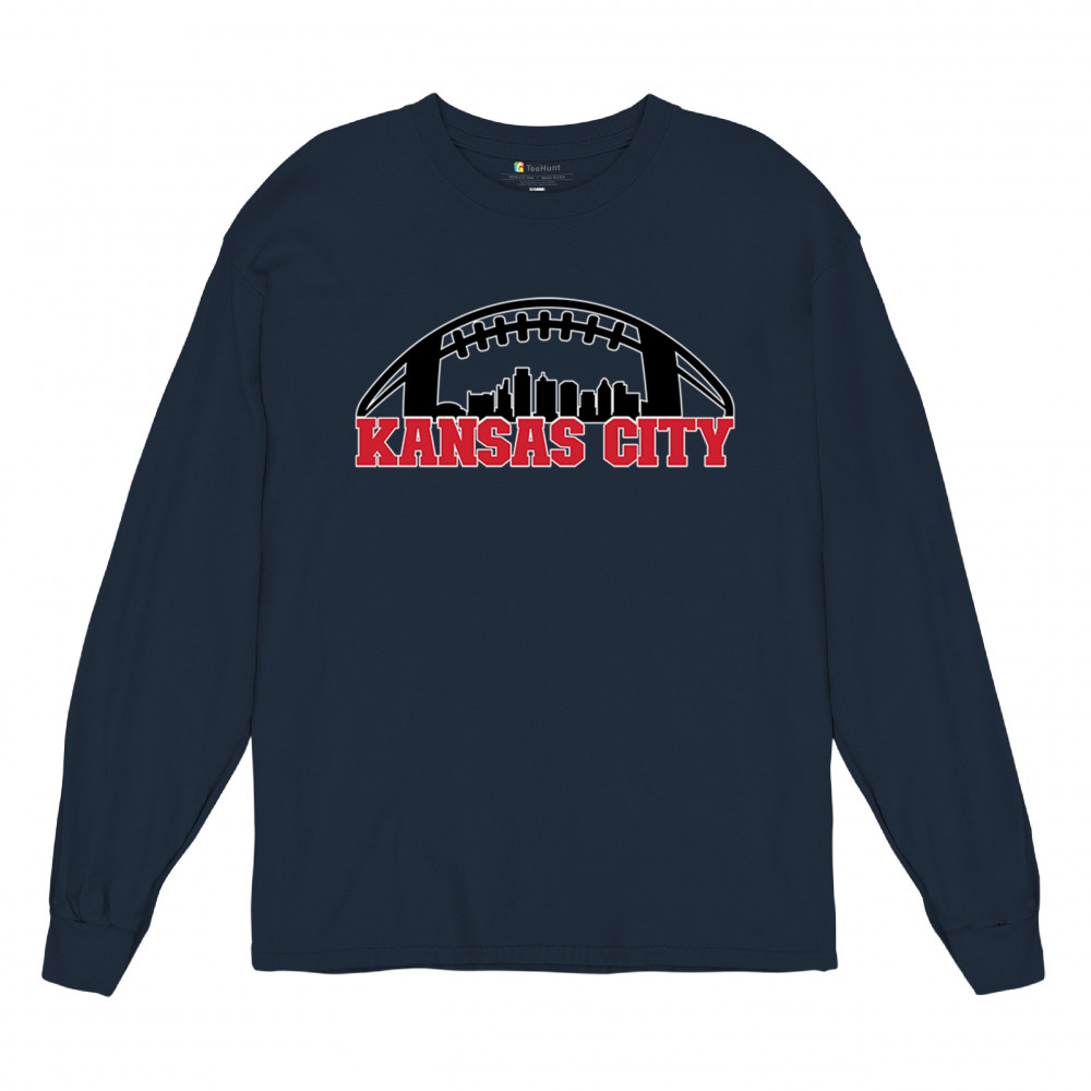 Celebrate Kansas City with a bold football design featuring the city skyline. Perfect for game days, tailgates, or proud sports fans.