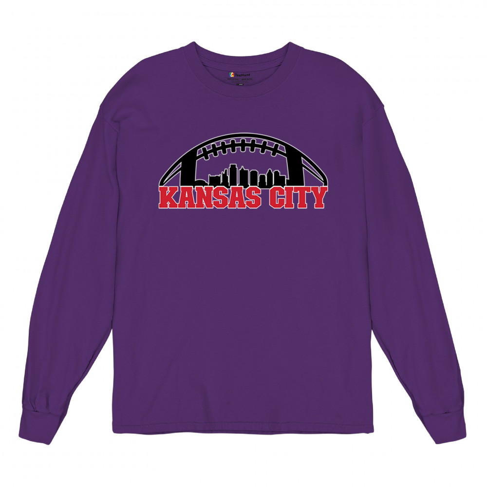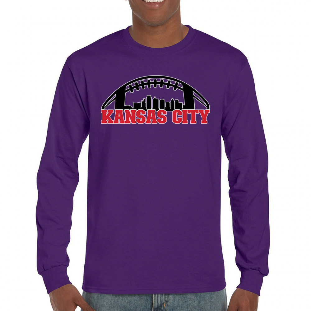 Celebrate Kansas City with a bold football design featuring the city skyline. Perfect for game days, tailgates, or proud sports fans.