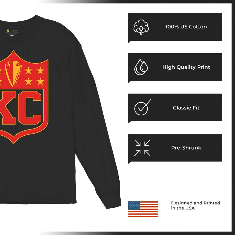 Show off KC pride with this Kansas shield design that embodies the spirit of red and gold football. From playoff vibes to river city football culture, this bold crest captures the heart of America football heritage. Perfect for game day, sports weekends, and football families, it unites fans with championship-level pride and big game energy that defines Kansas City sports culture.