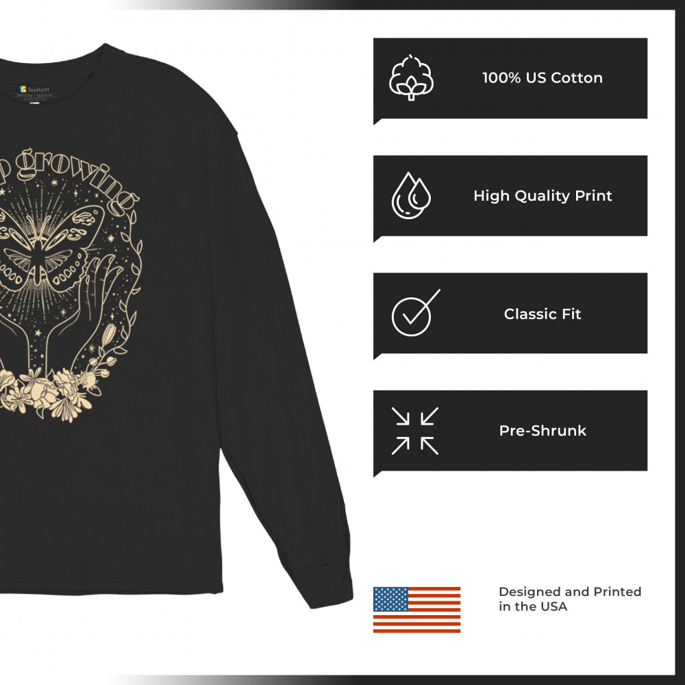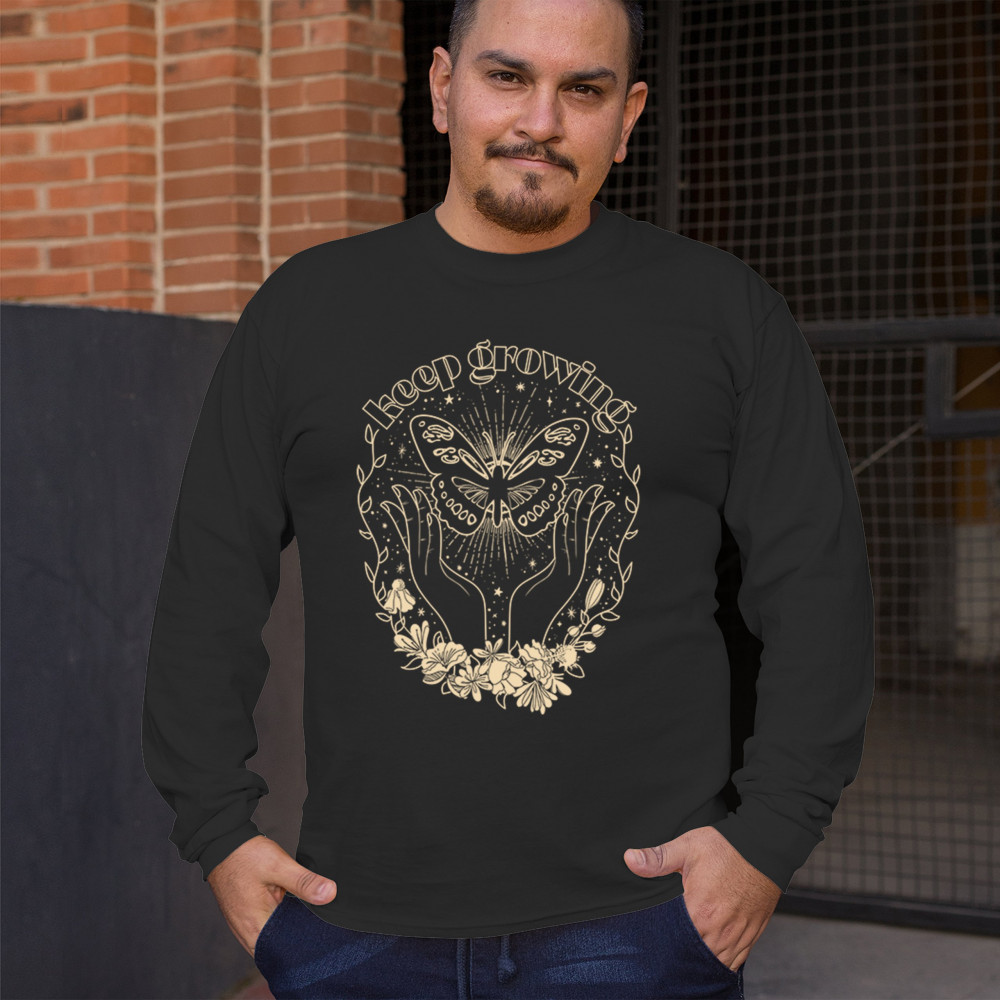 KEEP GROWING BUTTERFLY long sleeve t-shirt spiritual nature floral positivity black