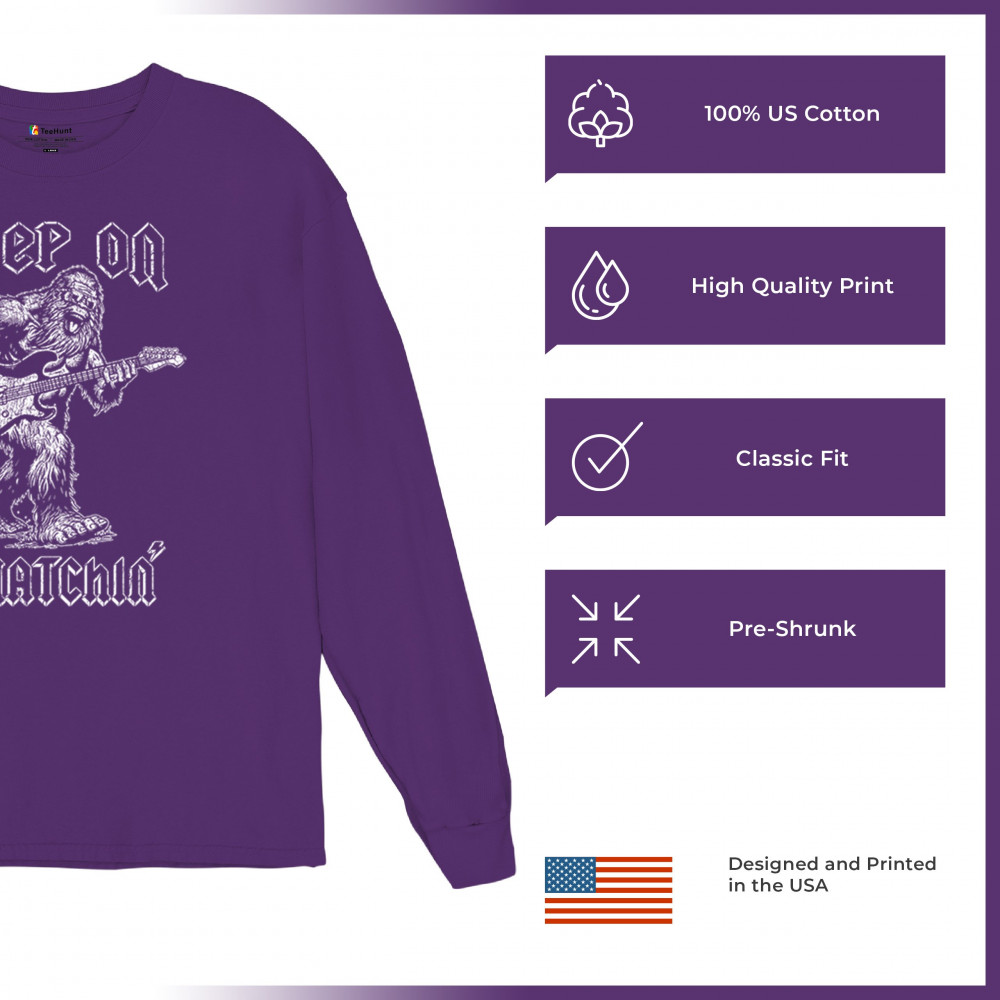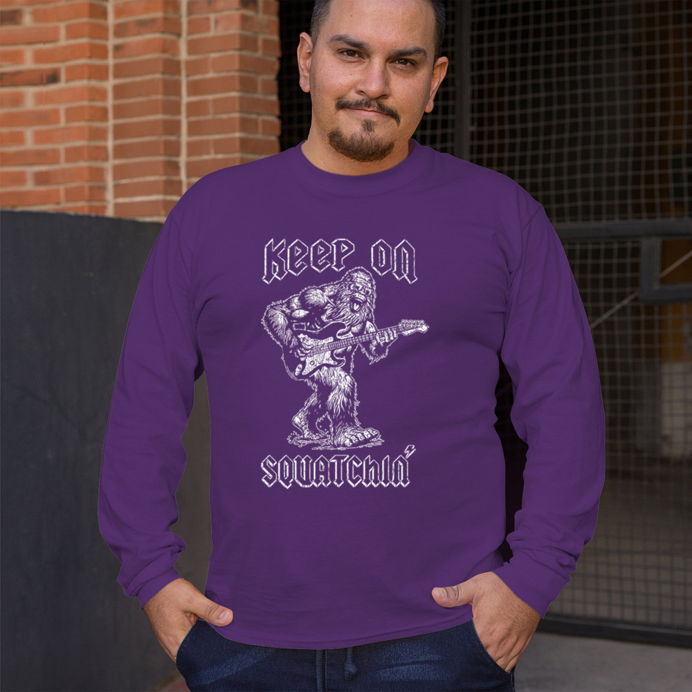 Celebrate music and adventure with the "Keep on Squatchin’" design! Bigfoot rocking a guitar makes this perfect for Sasquatch and music fans.