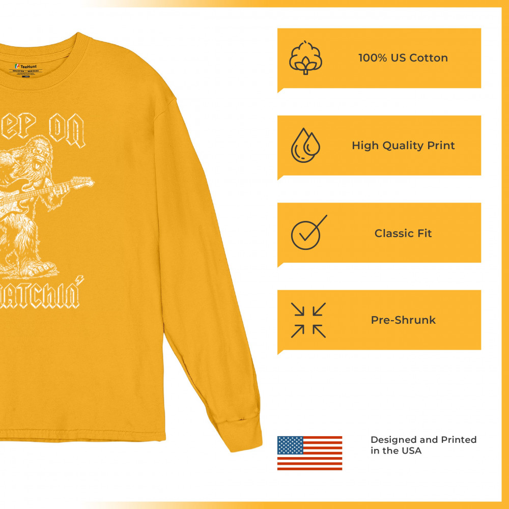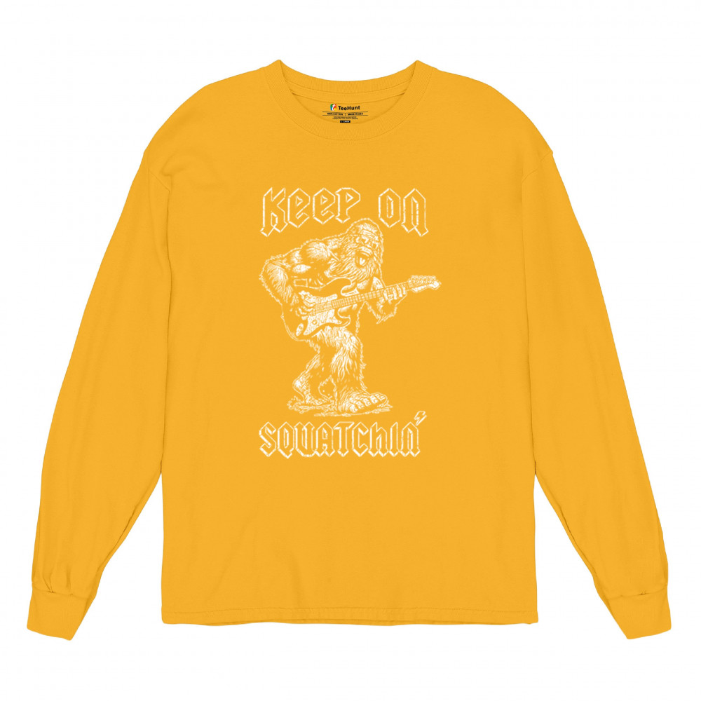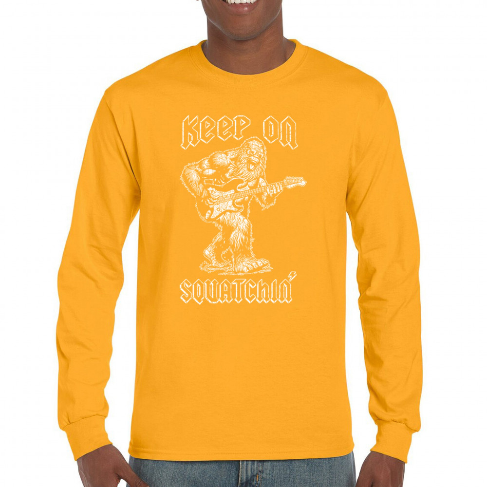 Celebrate music and adventure with the "Keep on Squatchin’" design! Bigfoot rocking a guitar makes this perfect for Sasquatch and music fans.