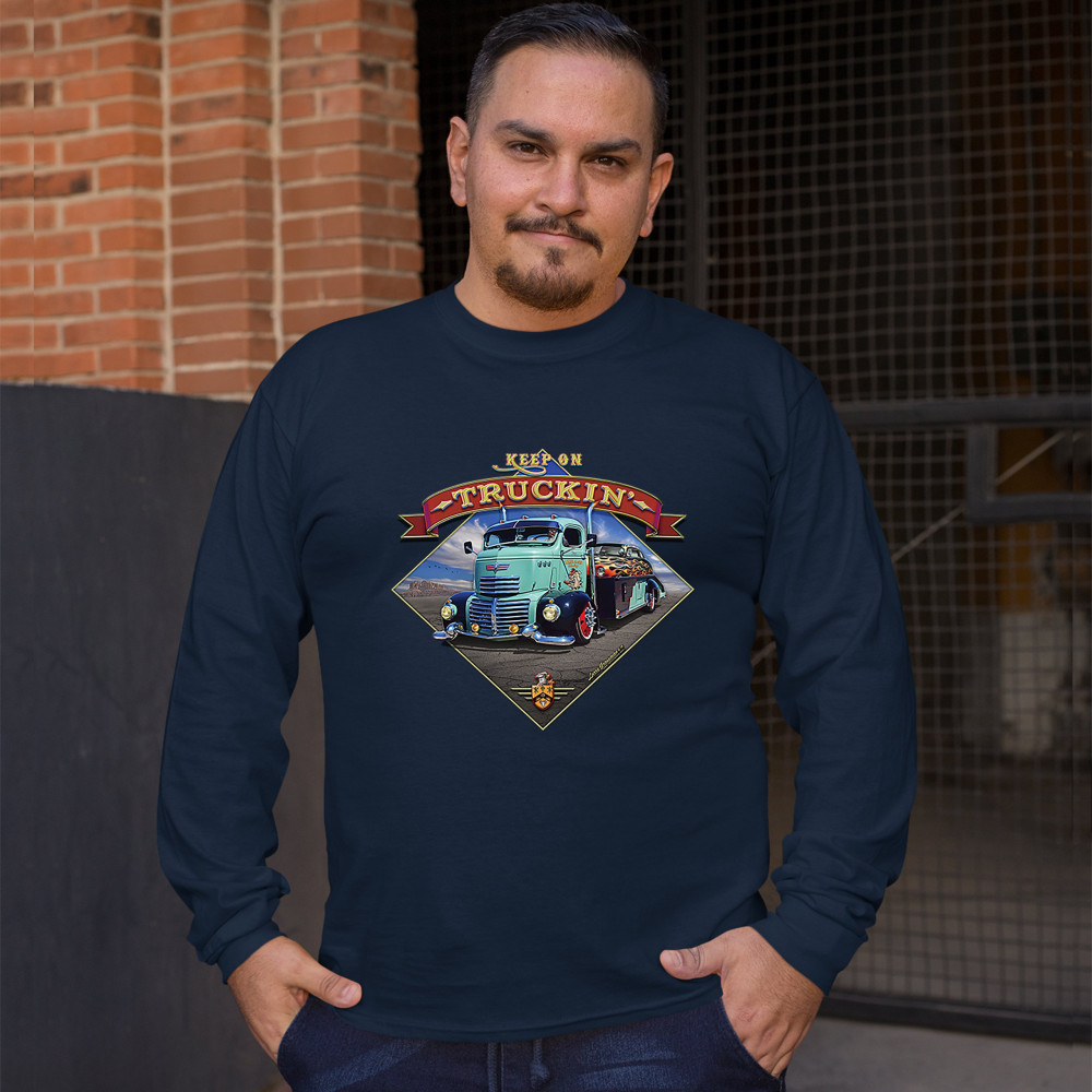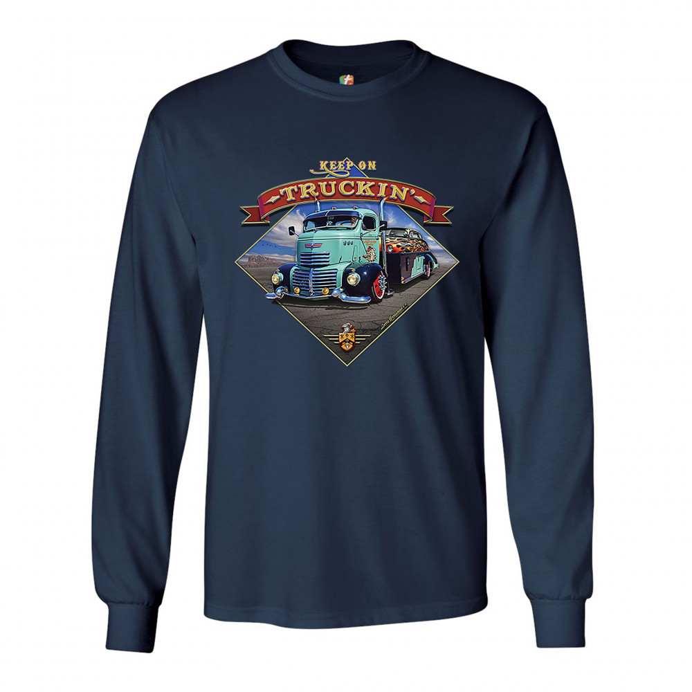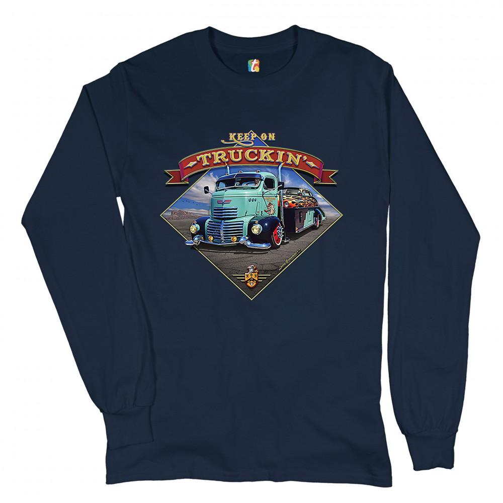 KEEP ON TRUCKIN' long sleeve t-shirt route 66 retro vintage truck driver navy blue