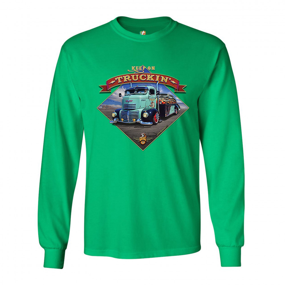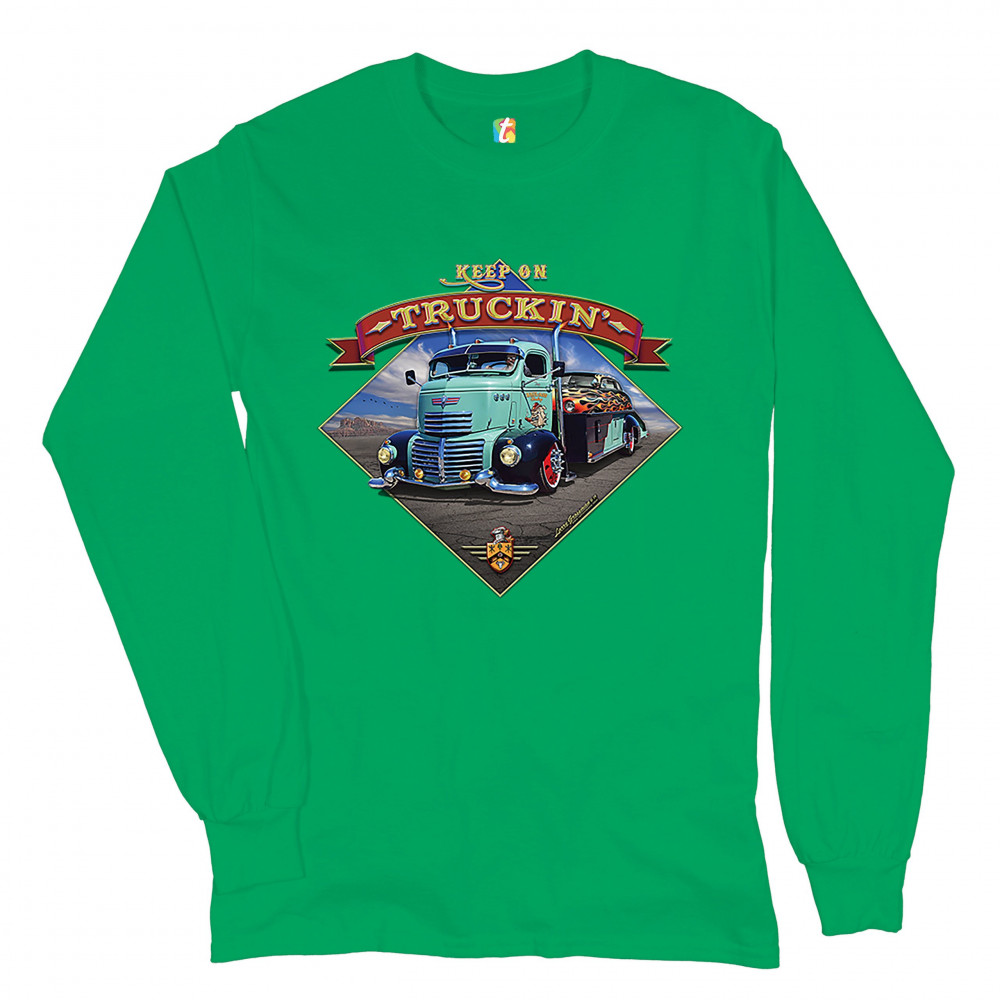 KEEP ON TRUCKIN' long sleeve t-shirt route 66 retro vintage truck driver green