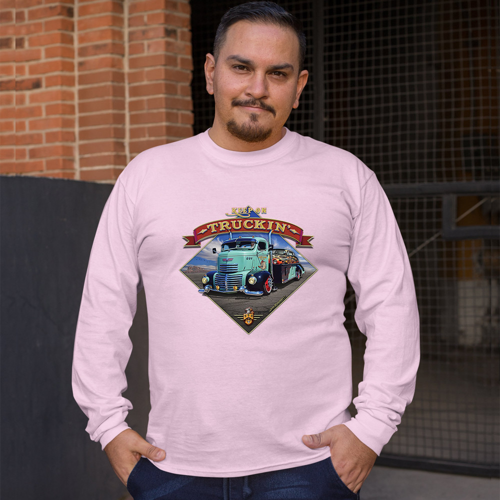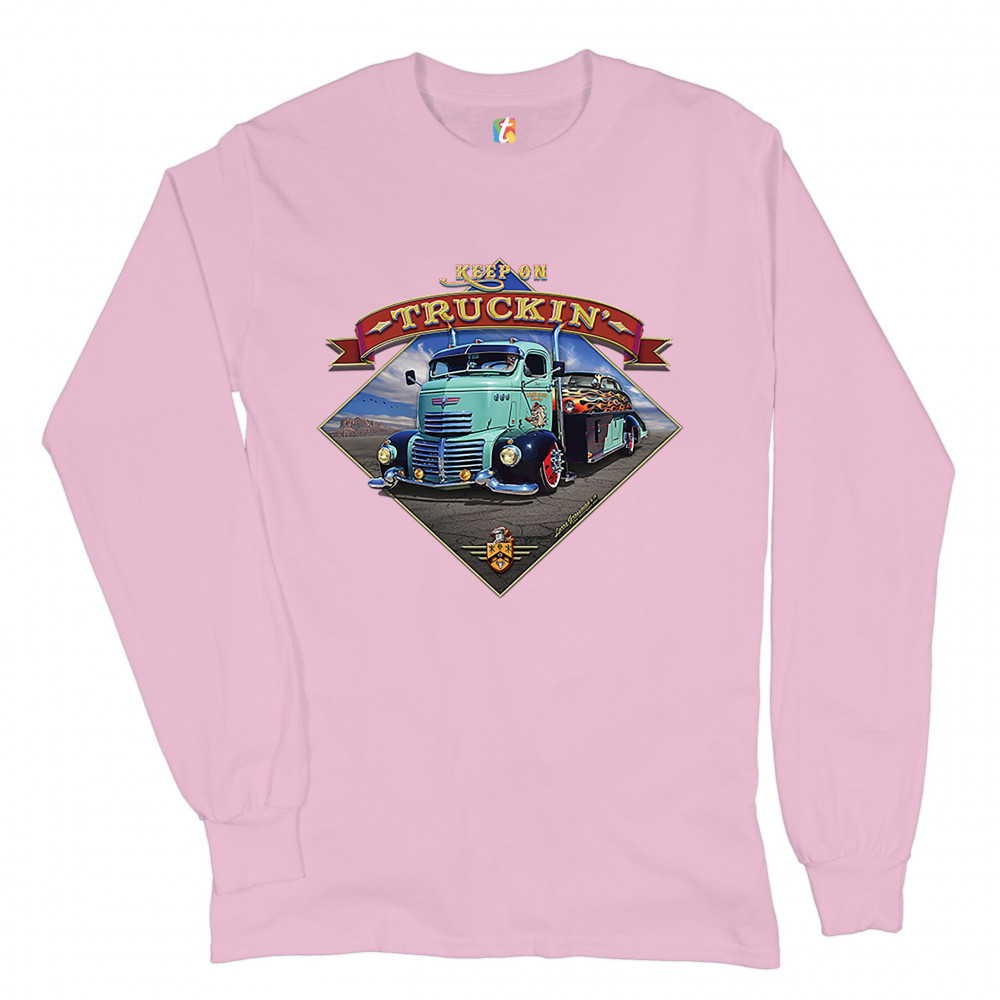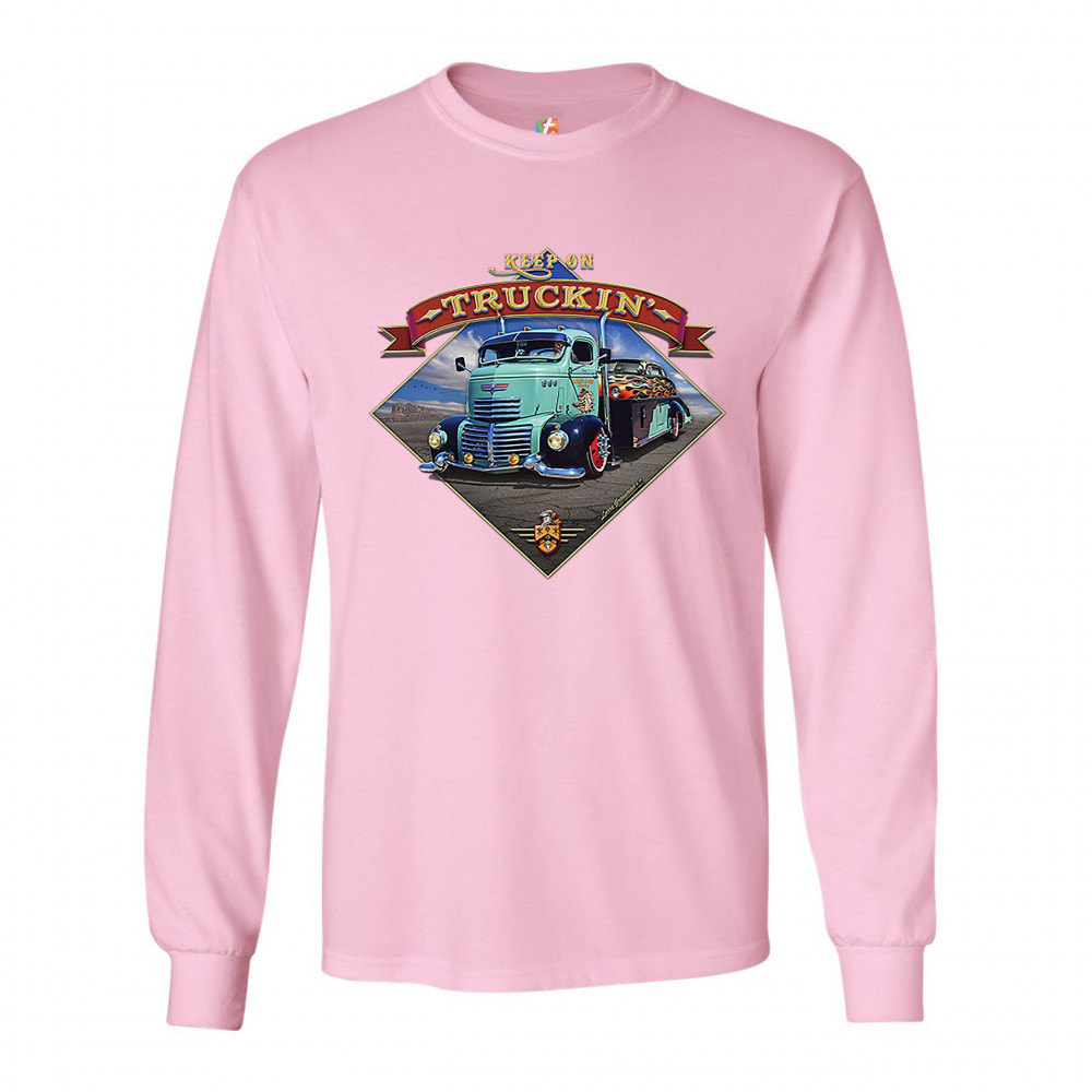 KEEP ON TRUCKIN' long sleeve t-shirt route 66 retro vintage truck driver pink