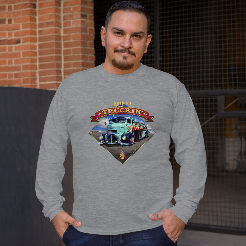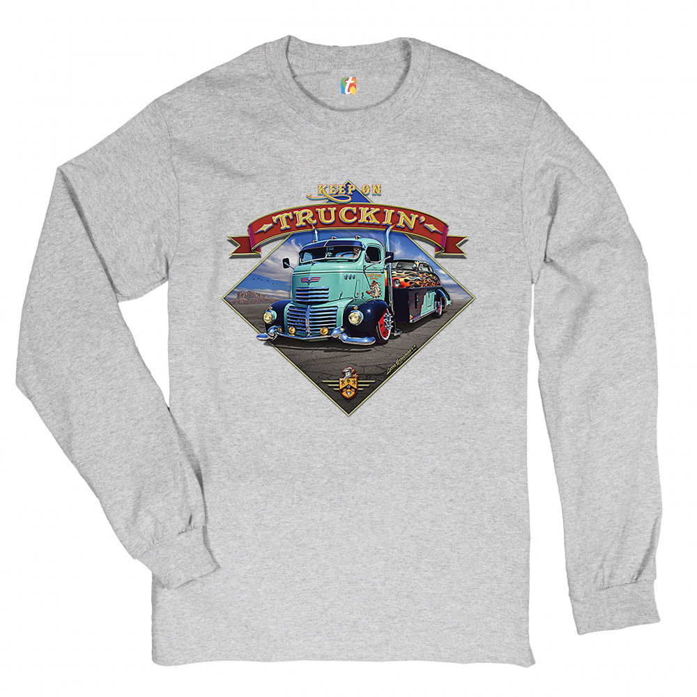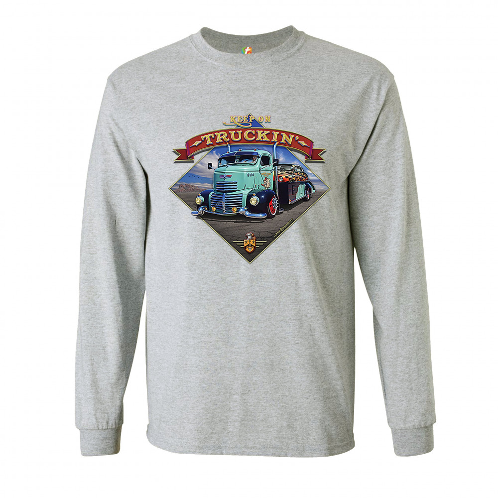KEEP ON TRUCKIN' long sleeve t-shirt route 66 retro vintage truck driver gray