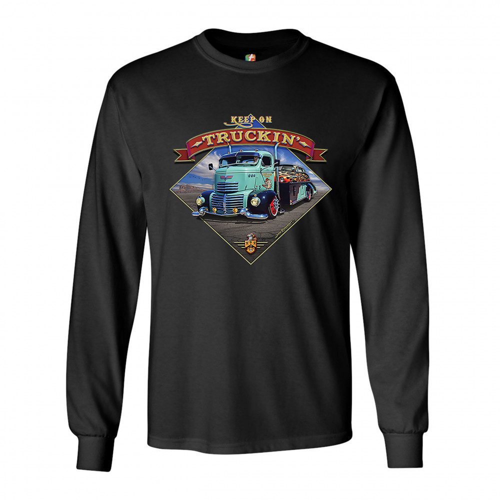 KEEP ON TRUCKIN' long sleeve t-shirt route 66 retro vintage truck driver black