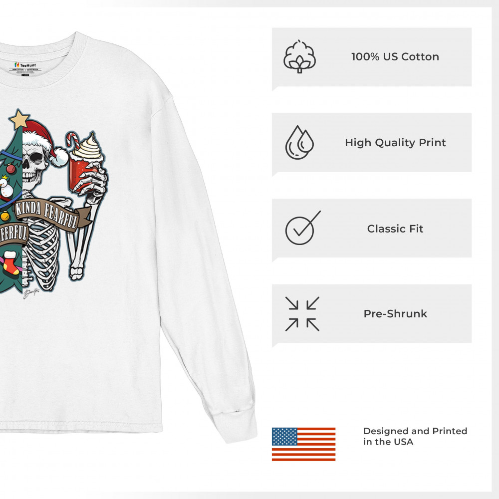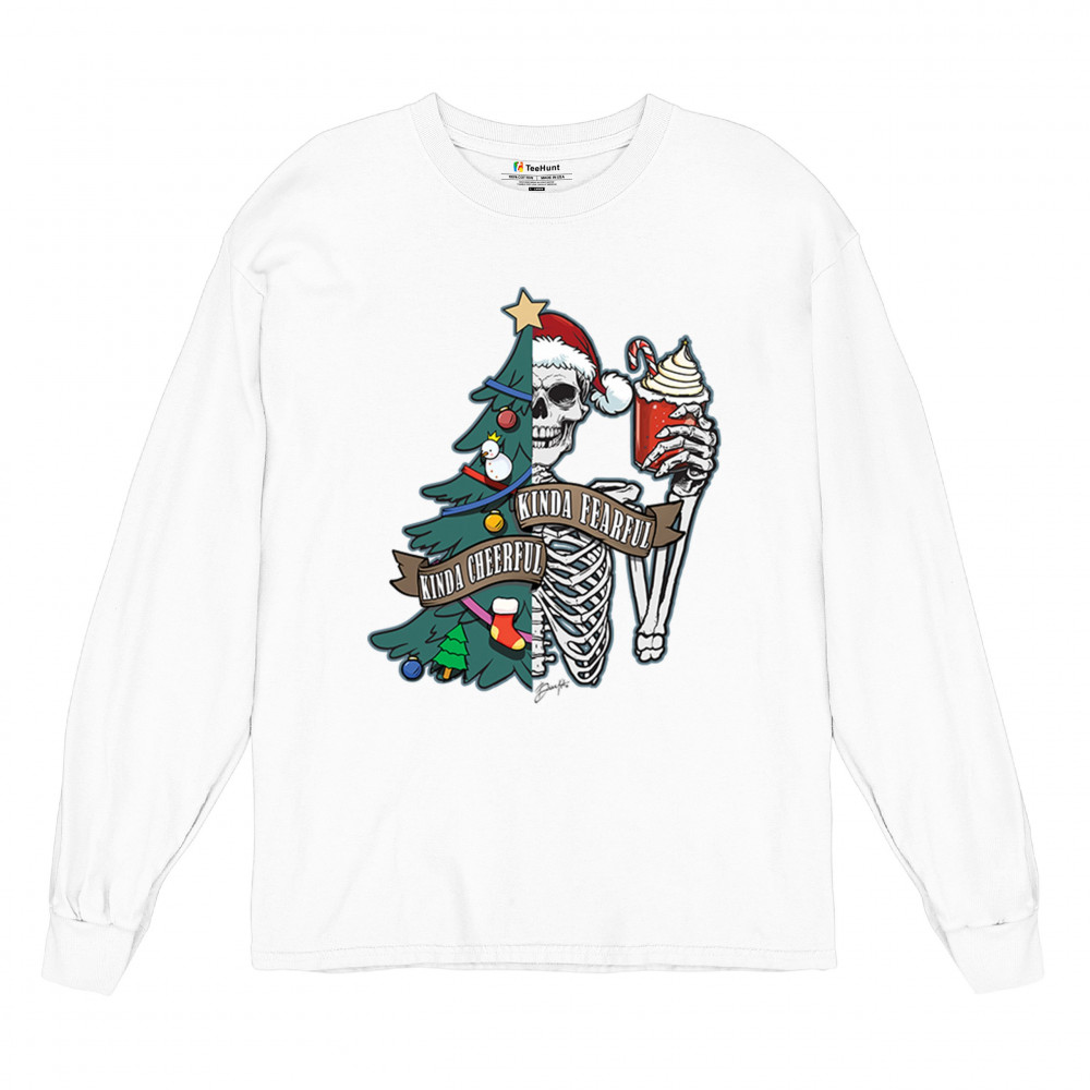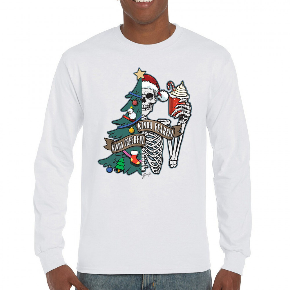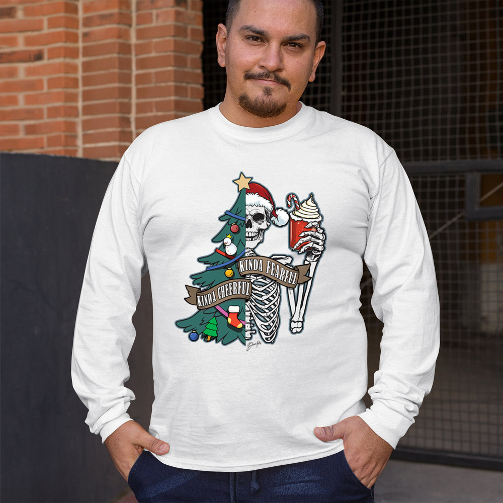 This creative Kinda Cheerful, Kinda Fearful design is a perfect blend of festive and spooky fun! Featuring a half-decorated Christmas tree and skeleton, it’s ideal for those who love combining Halloween and Christmas vibes. Great for secret Santa gifts, matching holiday pajamas, or rocking at your next ugly sweater contest. Perfect for office parties, family mornings, or simply adding some unique charm to your Feliz Navidad celebrations.