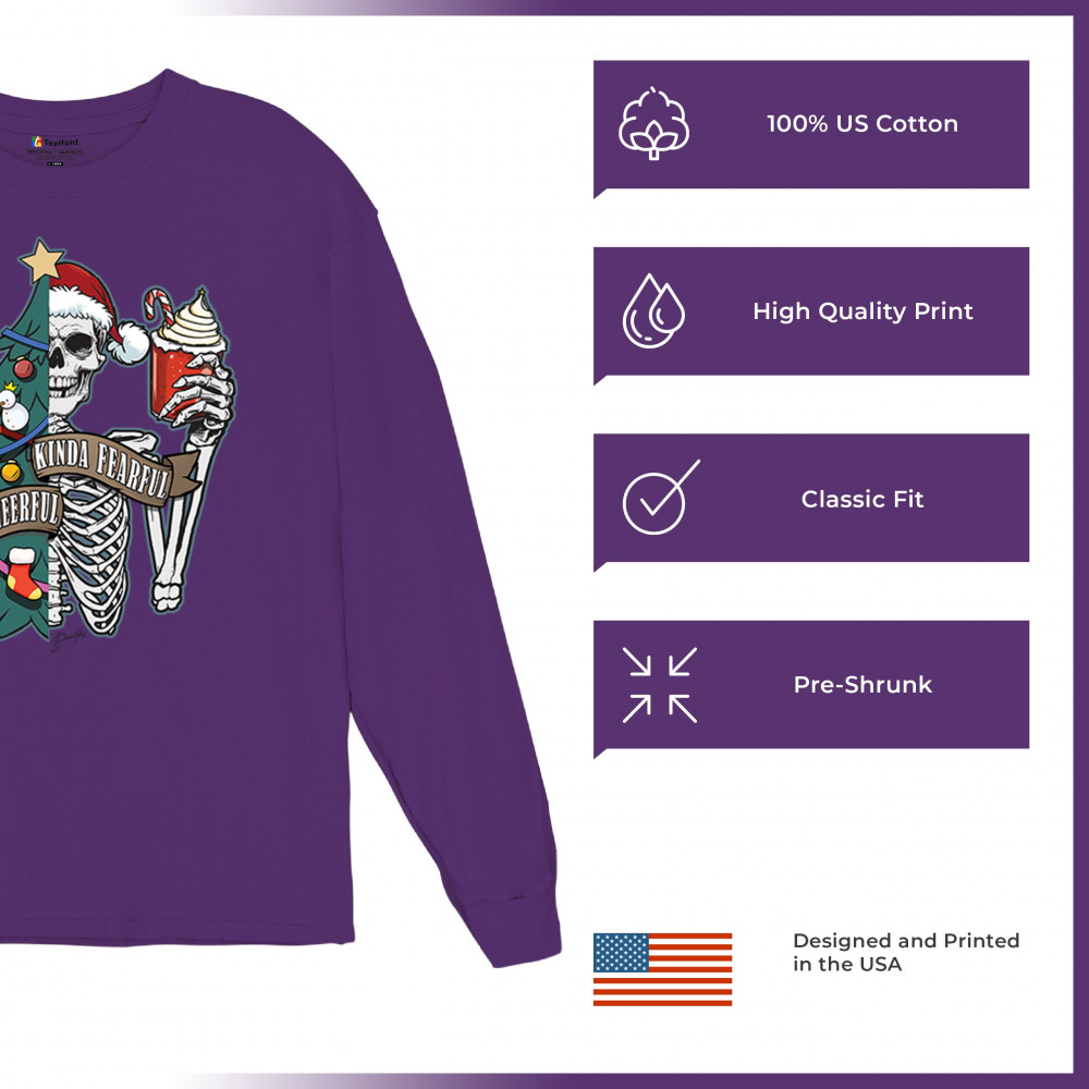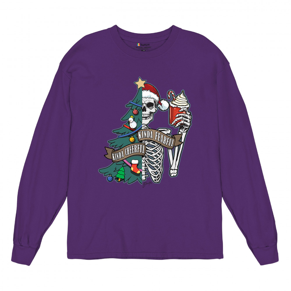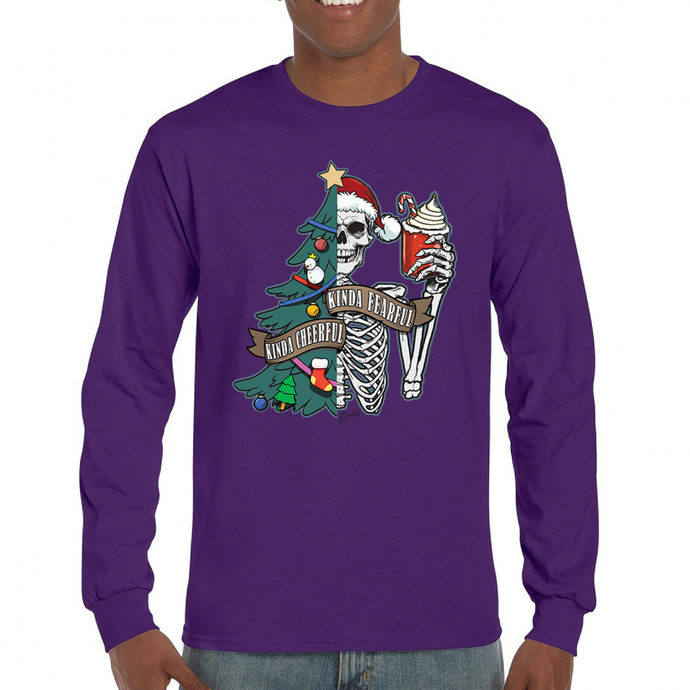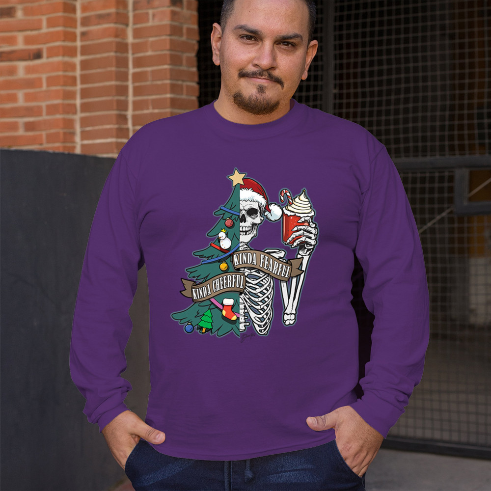 This creative Kinda Cheerful, Kinda Fearful design is a perfect blend of festive and spooky fun! Featuring a half-decorated Christmas tree and skeleton, it’s ideal for those who love combining Halloween and Christmas vibes. Great for secret Santa gifts, matching holiday pajamas, or rocking at your next ugly sweater contest. Perfect for office parties, family mornings, or simply adding some unique charm to your Feliz Navidad celebrations.