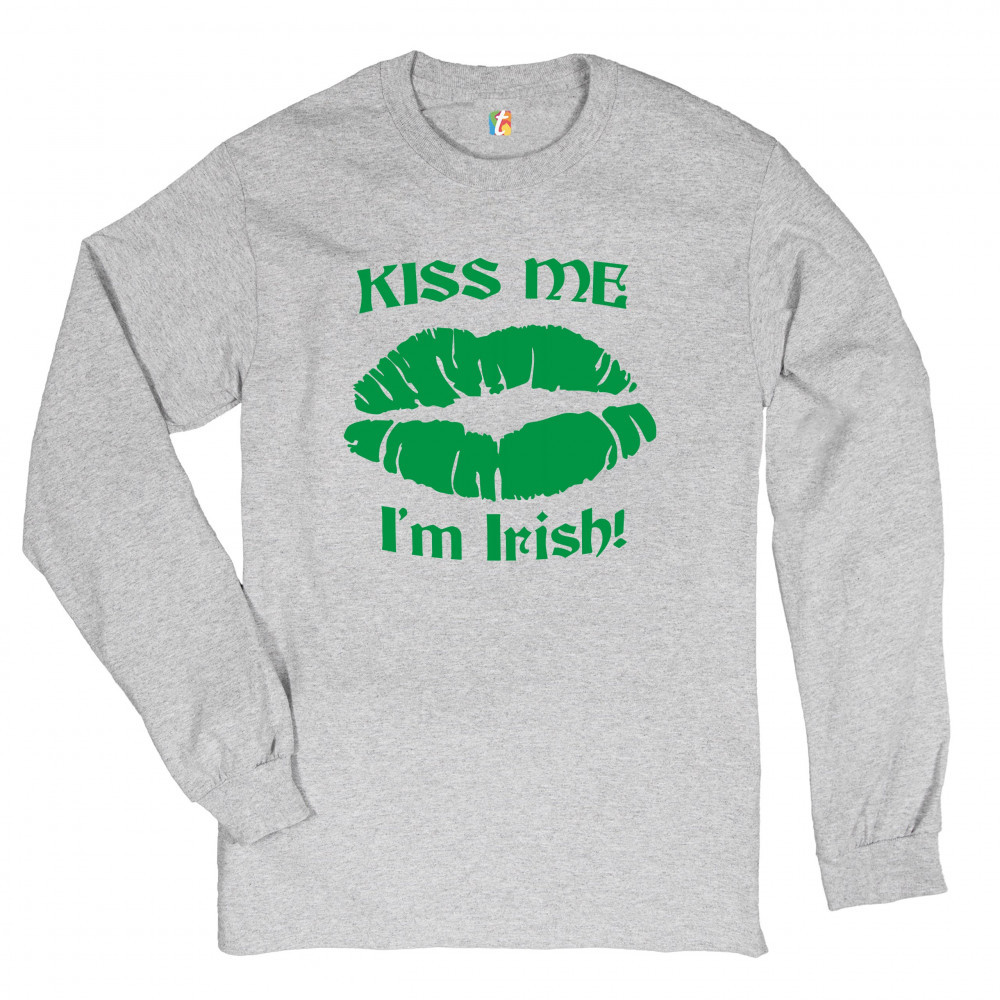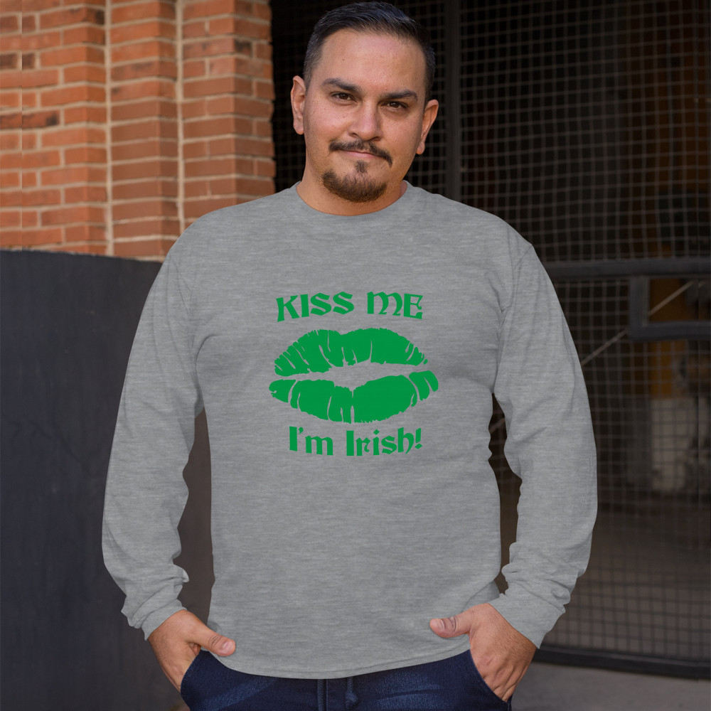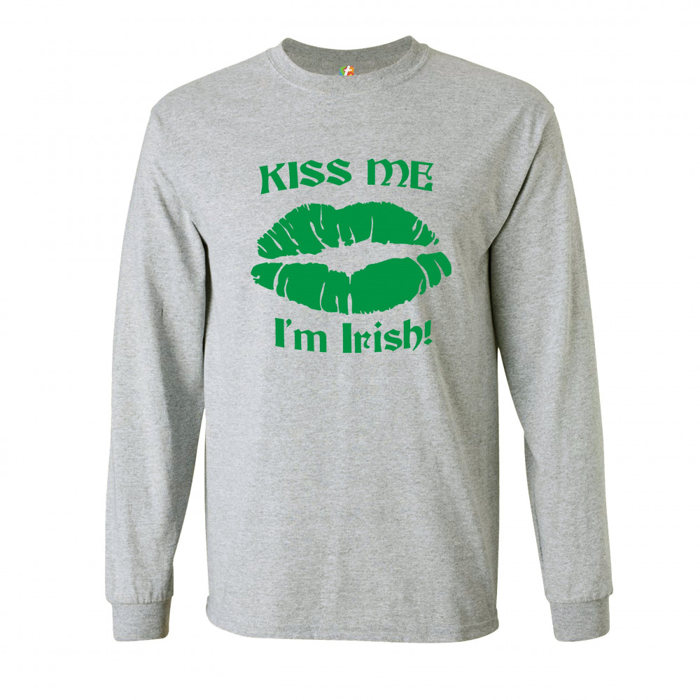 KISS ME I'M IRISH! long sleeve t-shirt funny st. patrick's day shenanigans gray