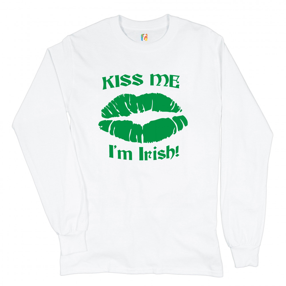 KISS ME I'M IRISH! long sleeve t-shirt funny st. patrick's day shenanigans white