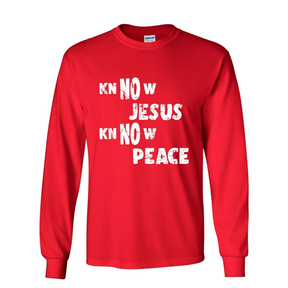 KNOW JESUS KNOW PEACE long sleeve t-shirt religion christian catholic faith tee red