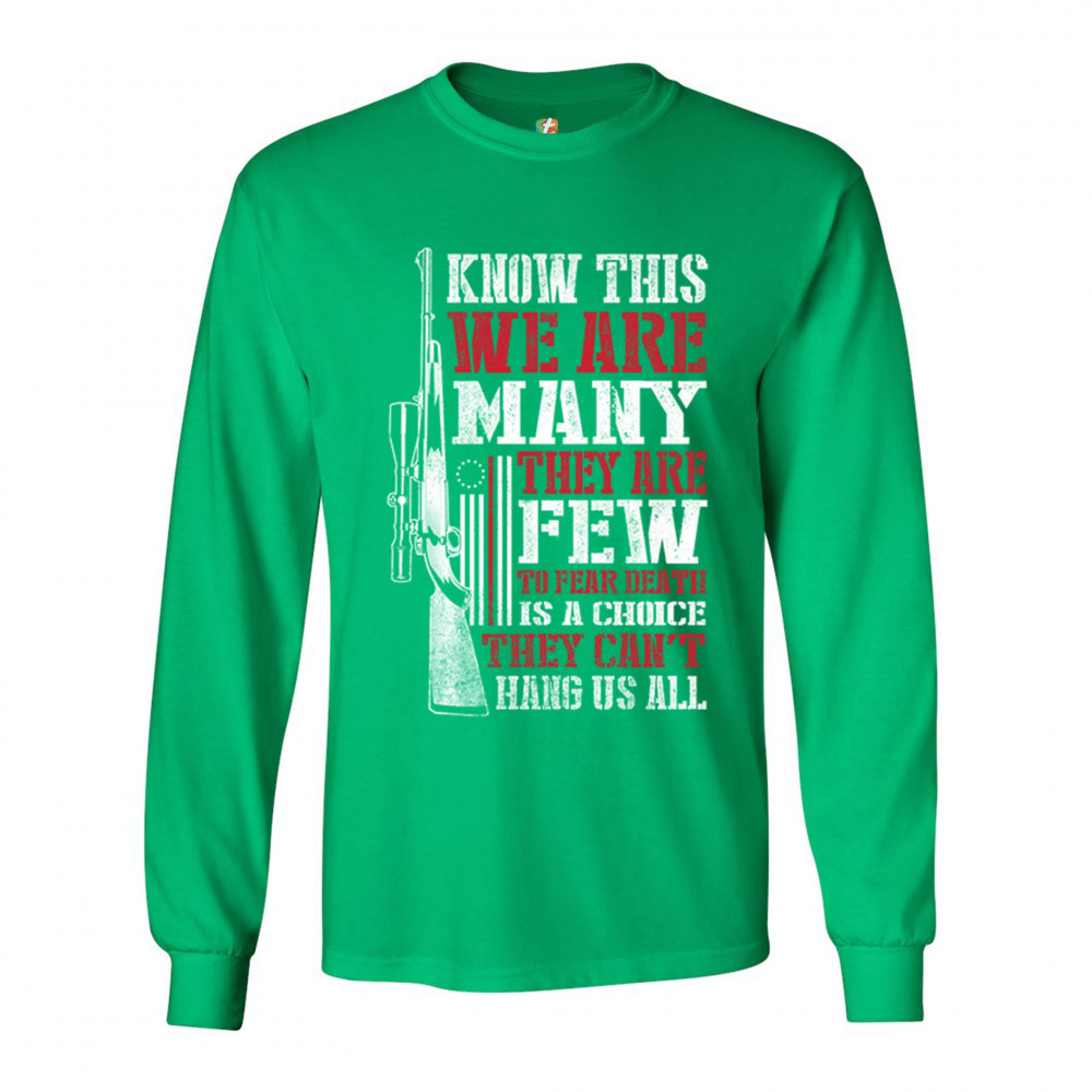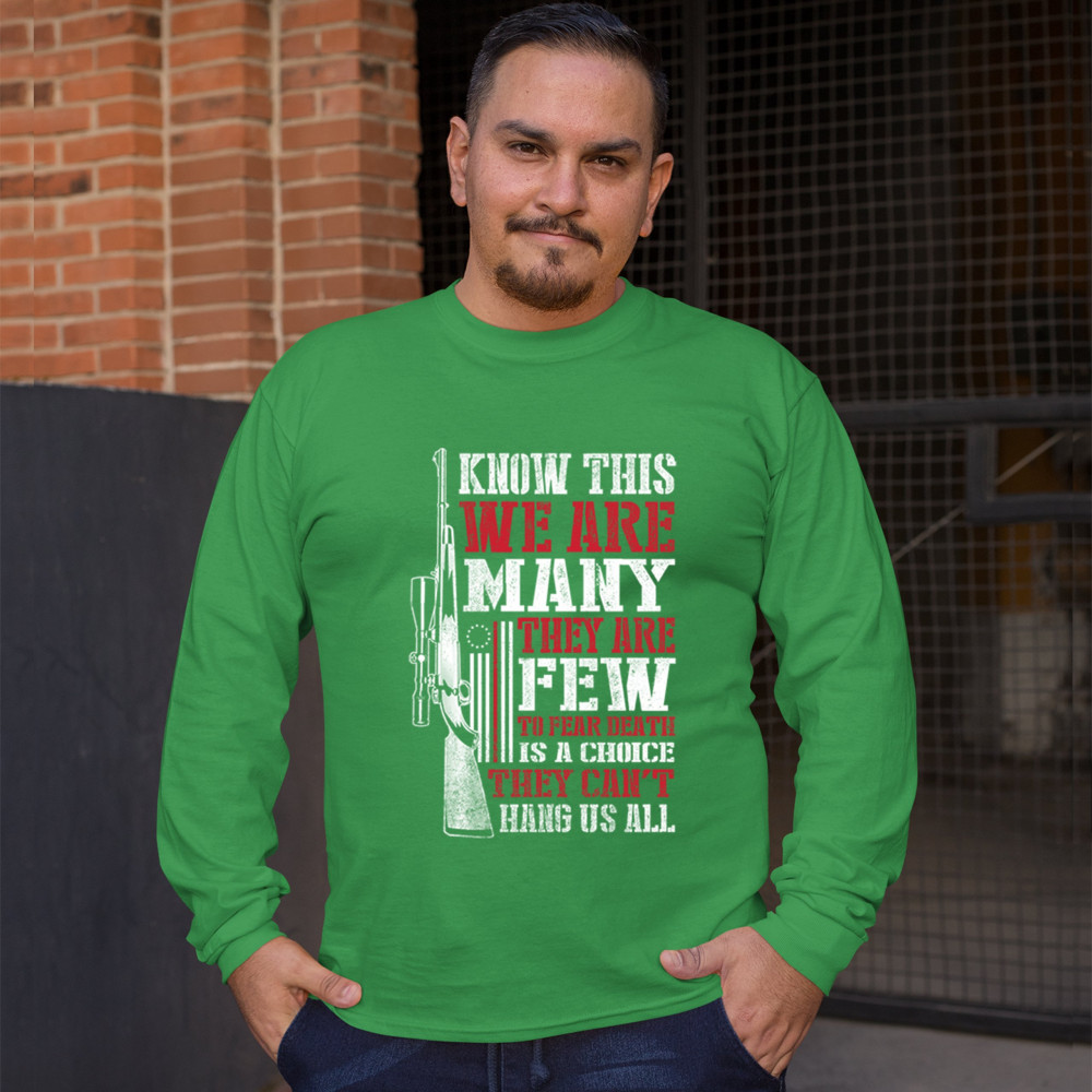 KNOW THIS WE ARE MANY THEY ARE FEW long sleeve t-shirt 2nd amendment militia green