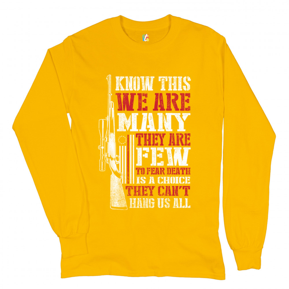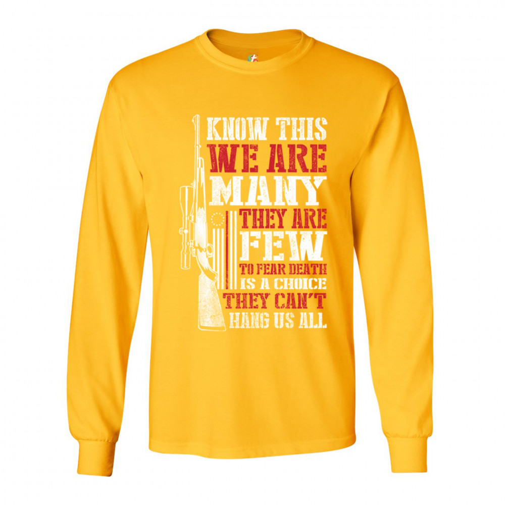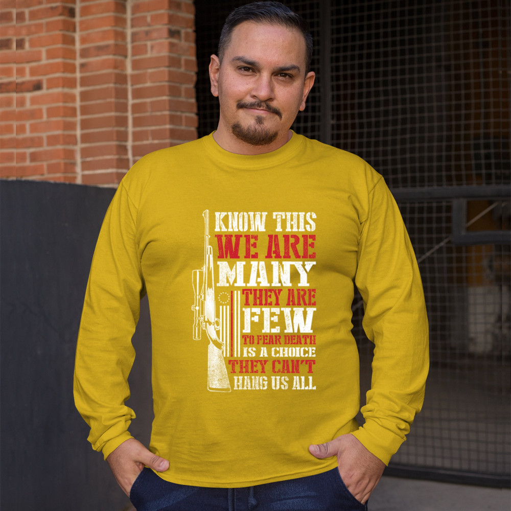 KNOW THIS WE ARE MANY THEY ARE FEW long sleeve t-shirt 2nd amendment militia yellow