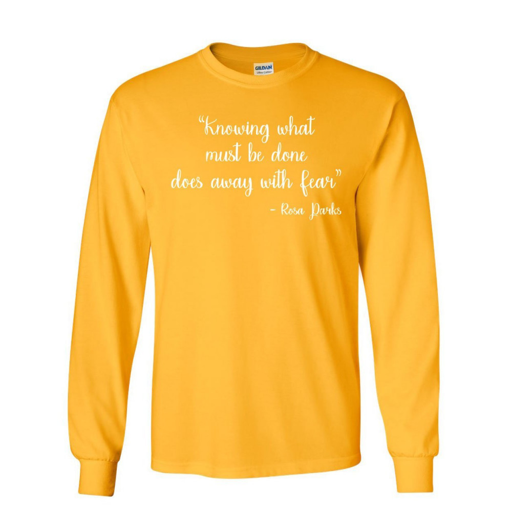 KNOWING WHAT MUST BE DONE - ROSA PARKS long sleeve t-shirt civil rights tee yellow