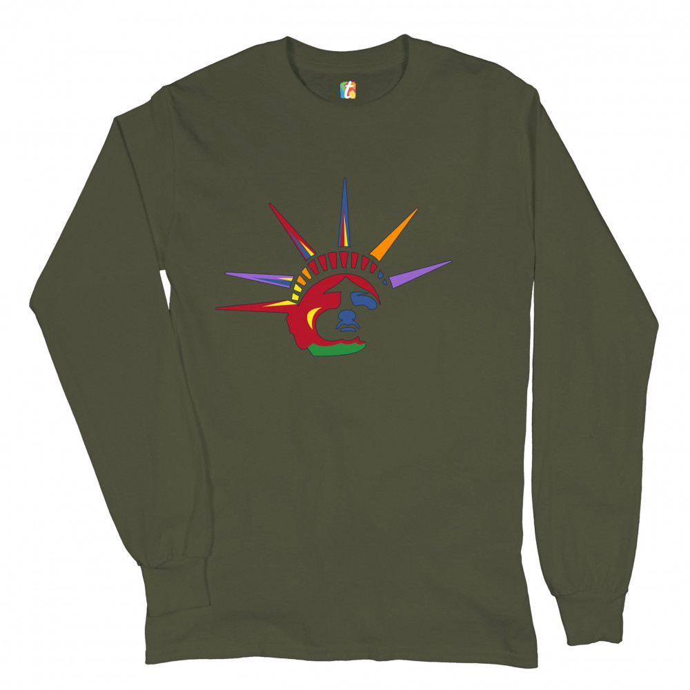 LADY LIBERTY long sleeve t-shirt patriotic new york statue of liberty july 4th military green