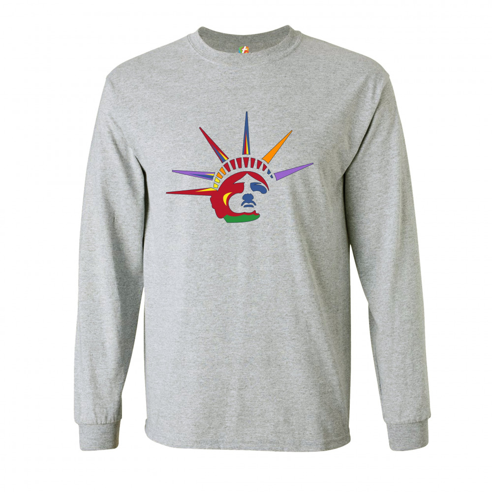 LADY LIBERTY long sleeve t-shirt patriotic new york statue of liberty july 4th gray