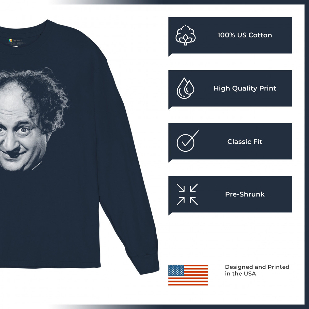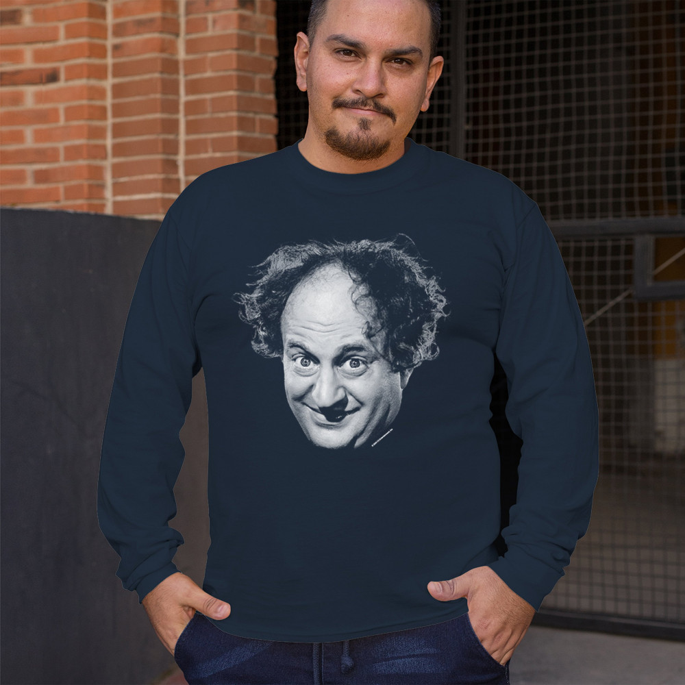 Our design breathes new life into Larry's legendary persona, featuring his playful gaze that Three Stooges fans know and love. This monochromatic portrayal is a homage to the subtleties of vintage comedy, highlighting the timelessness of classic entertainment. It's a perfect blend of nostalgia and merriment, capturing Larry's essence in a way that fans, new and old, will treasure.