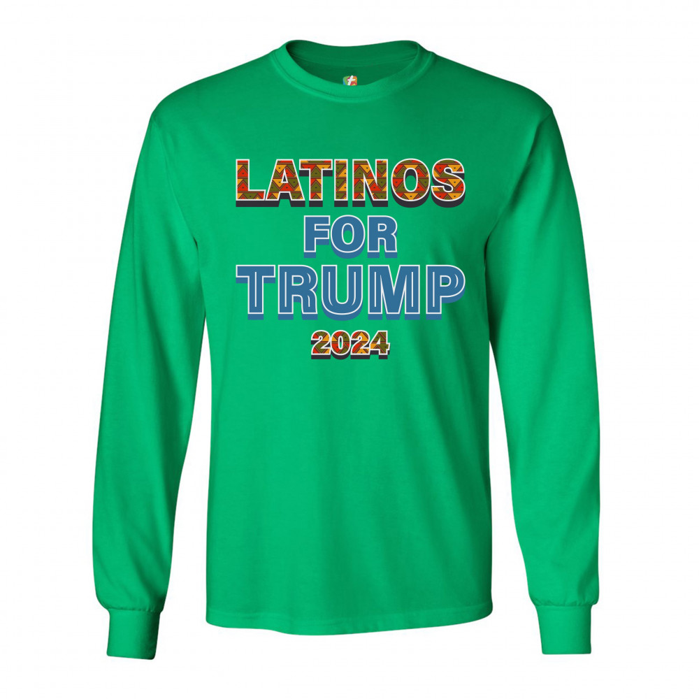 LATINOS FOR TRUMP 2024 long sleeve t-shirt keep america great conservative maga green