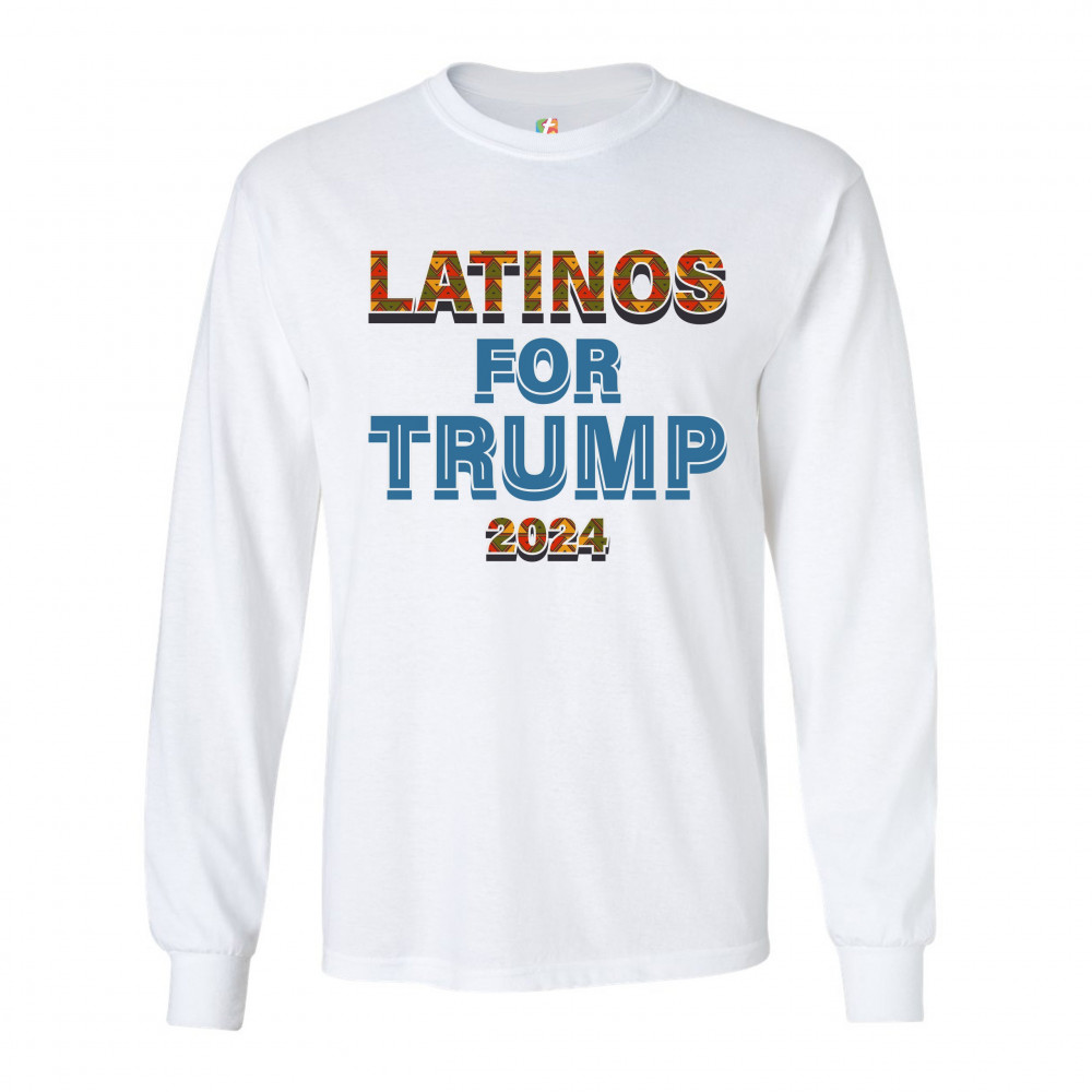 LATINOS FOR TRUMP 2024 long sleeve t-shirt keep america great conservative maga white