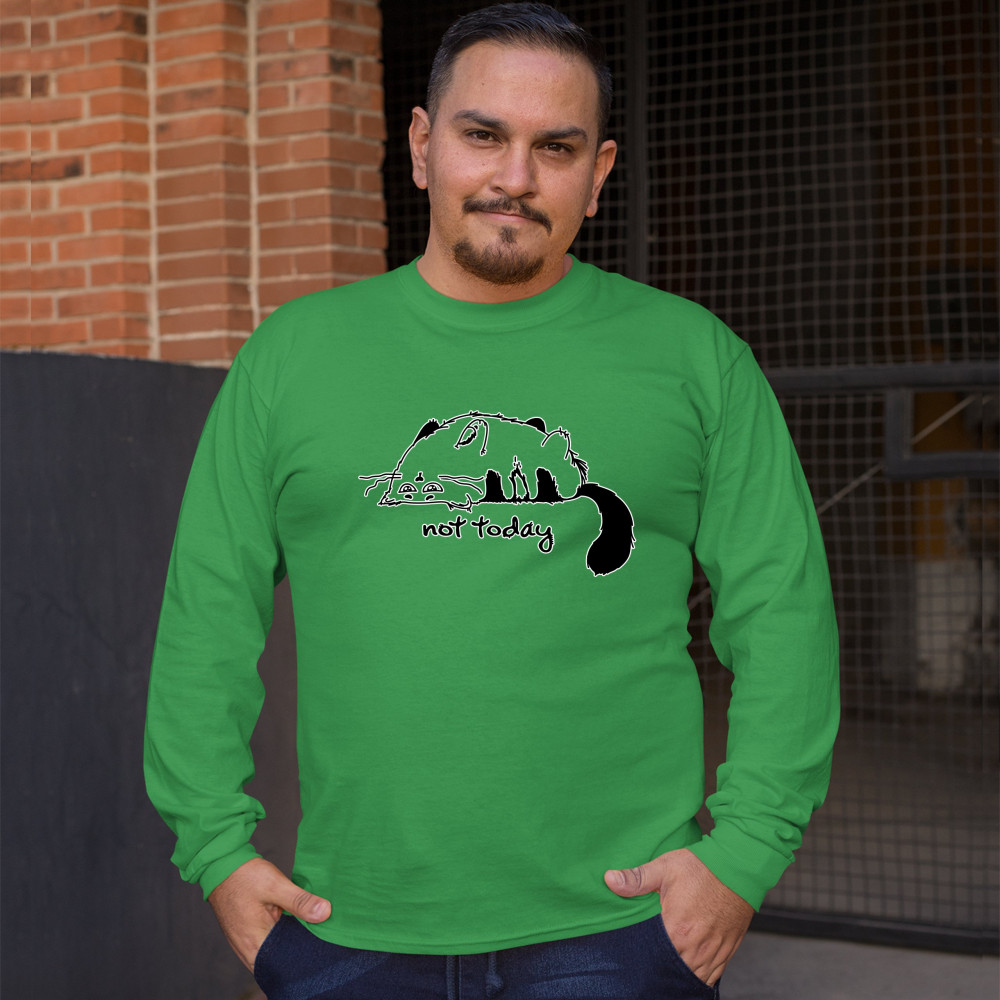 LAZY KITTY NOT TODAY long sleeve t-shirt kitten cat lovers funny green