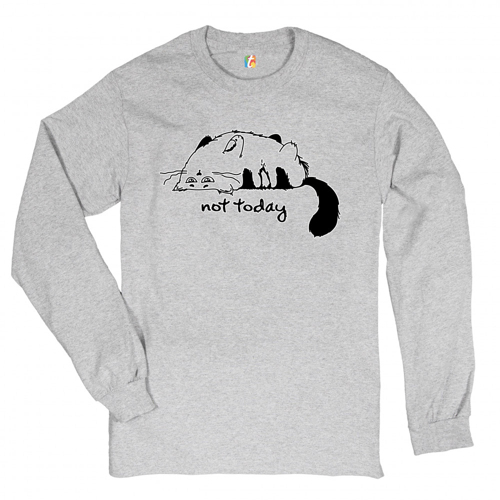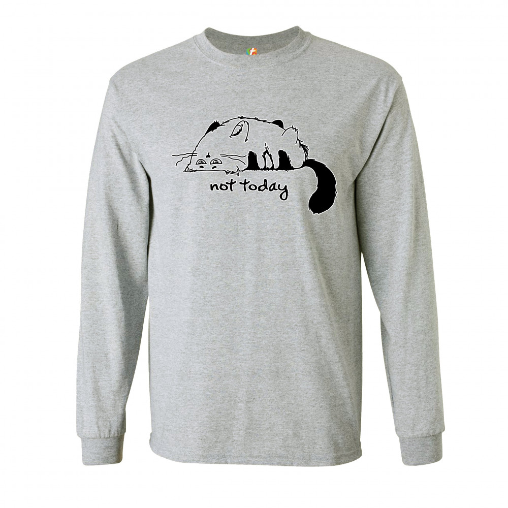 LAZY KITTY NOT TODAY long sleeve t-shirt kitten cat lovers funny gray