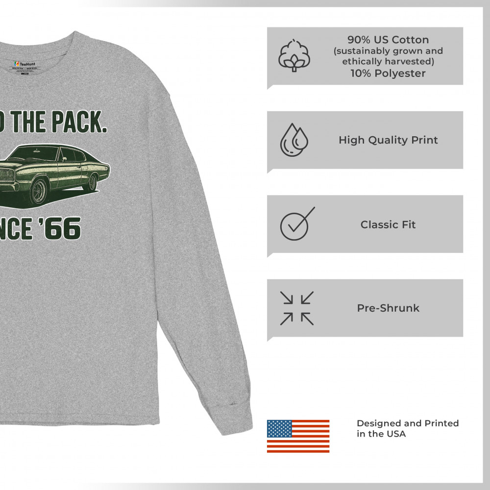 Power and pride collide in this “Lead the Pack Since ’66†design, built for those who appreciate vintage muscle car glory. With a legendary 1966 street icon front and center, it delivers bold styling and retro horsepower vibes. A go-to for cruise night kings, classic gearheads, and anyone who lives life in the fast lane.