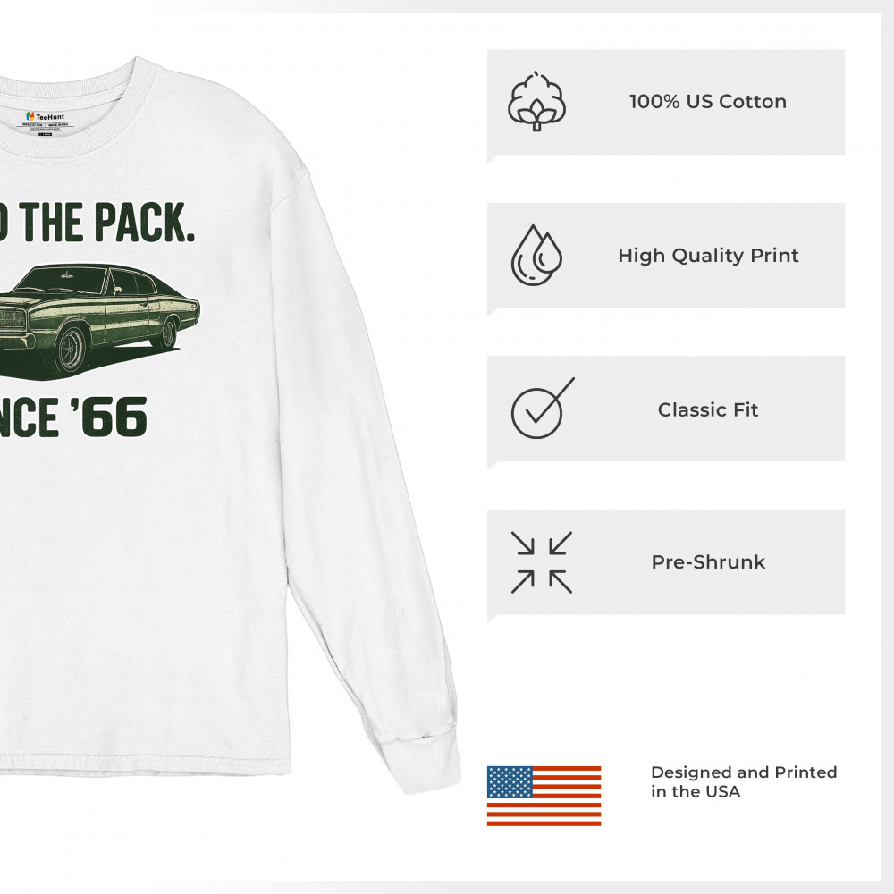 Power and pride collide in this “Lead the Pack Since ’66†design, built for those who appreciate vintage muscle car glory. With a legendary 1966 street icon front and center, it delivers bold styling and retro horsepower vibes. A go-to for cruise night kings, classic gearheads, and anyone who lives life in the fast lane.