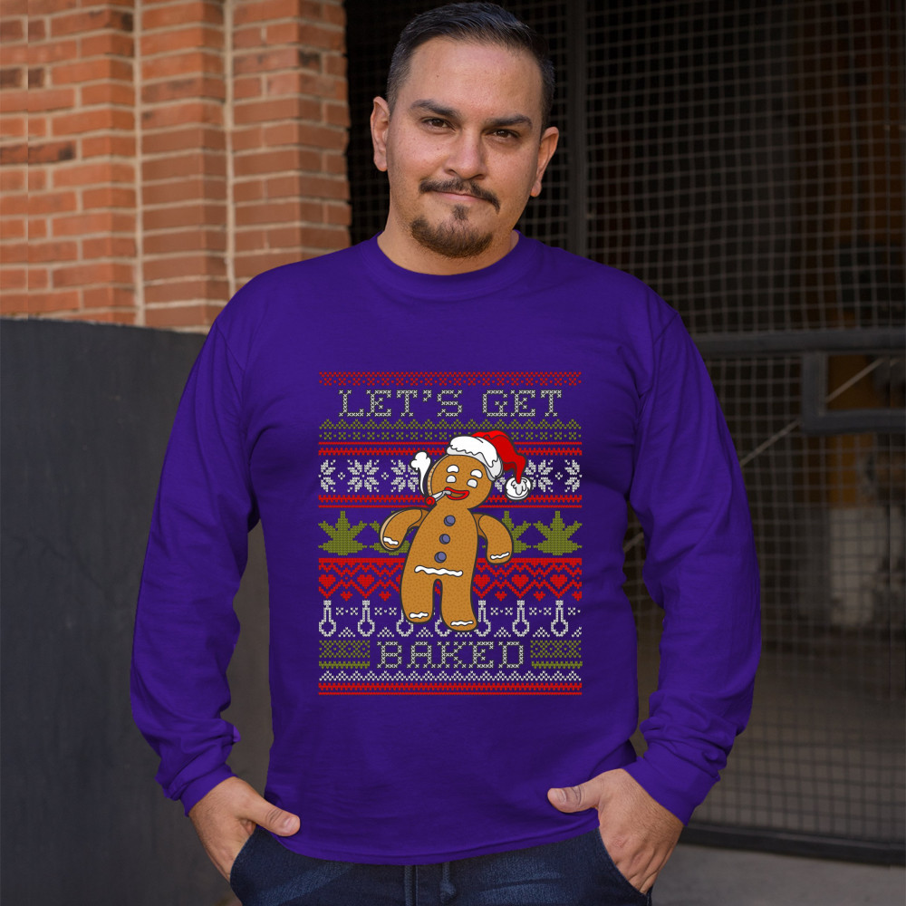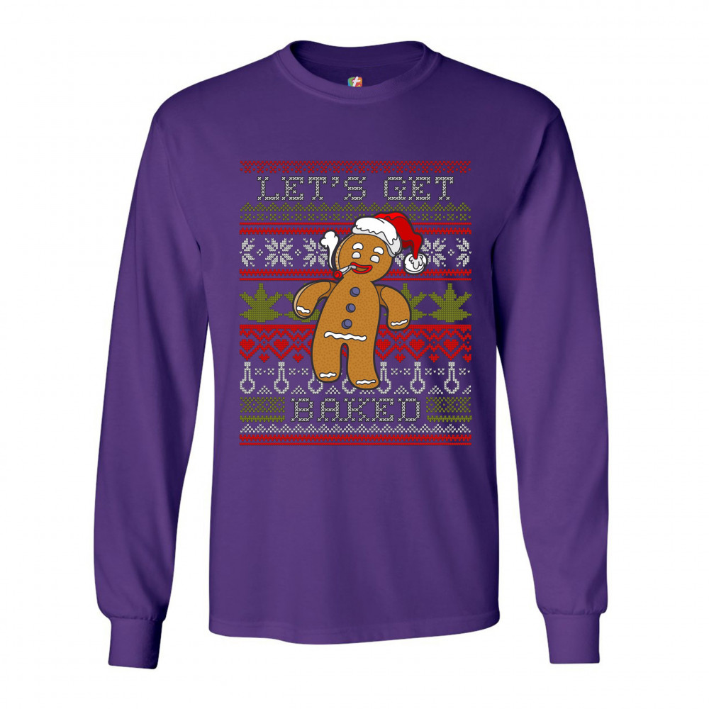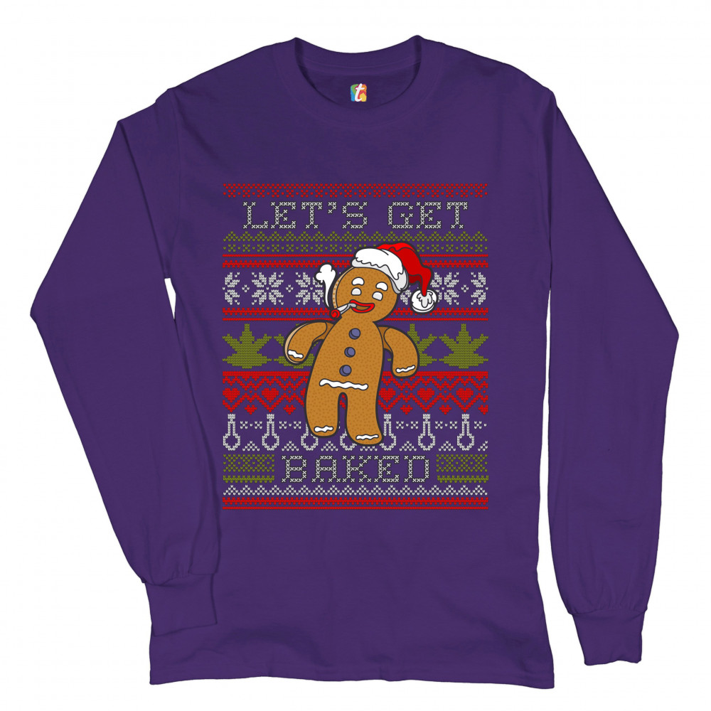 LET'S GET BAKED long sleeve t-shirt ugly sweater gingerbread man 420 marijuana purple