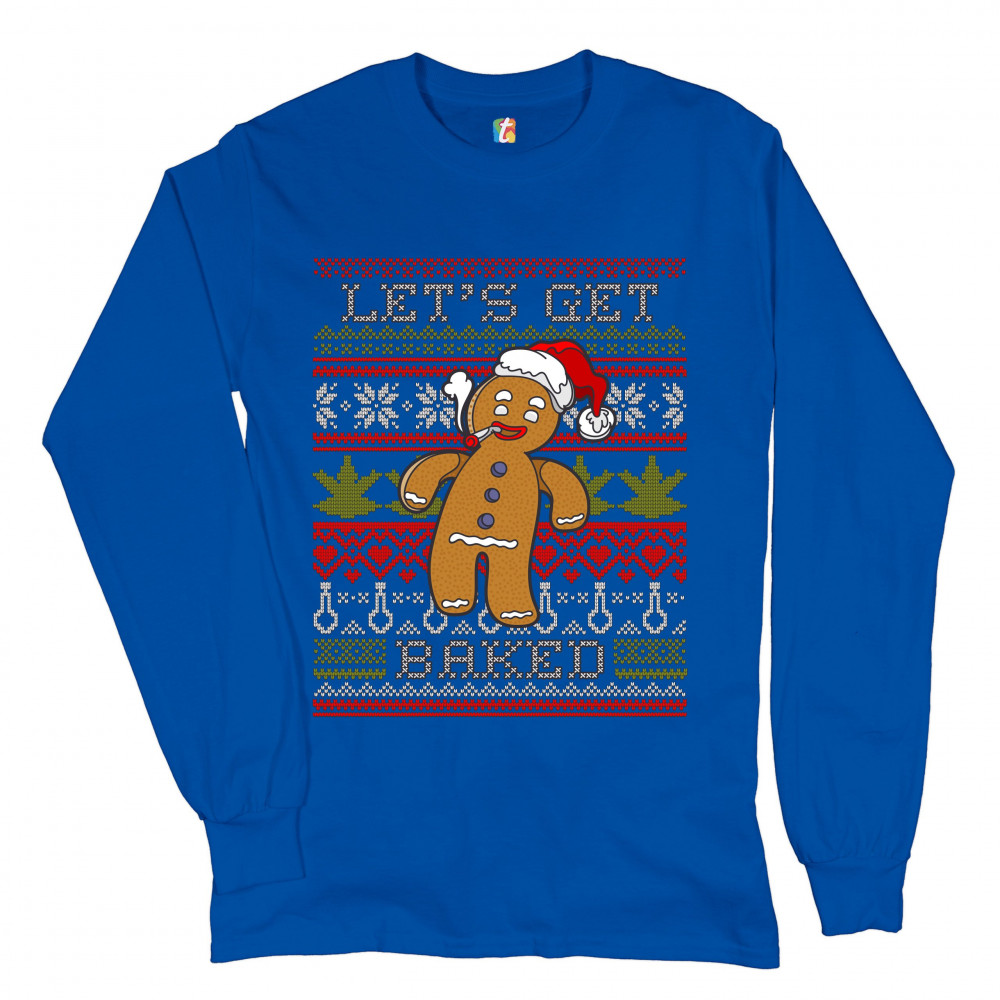 LET'S GET BAKED long sleeve t-shirt ugly sweater gingerbread man 420 marijuana royal blue