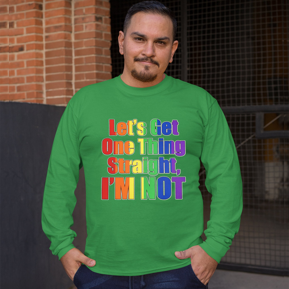 LET'S GET ONE THING STRAIGHT, I'M NOT long sleeve t-shirt lgbt gay rainbow green