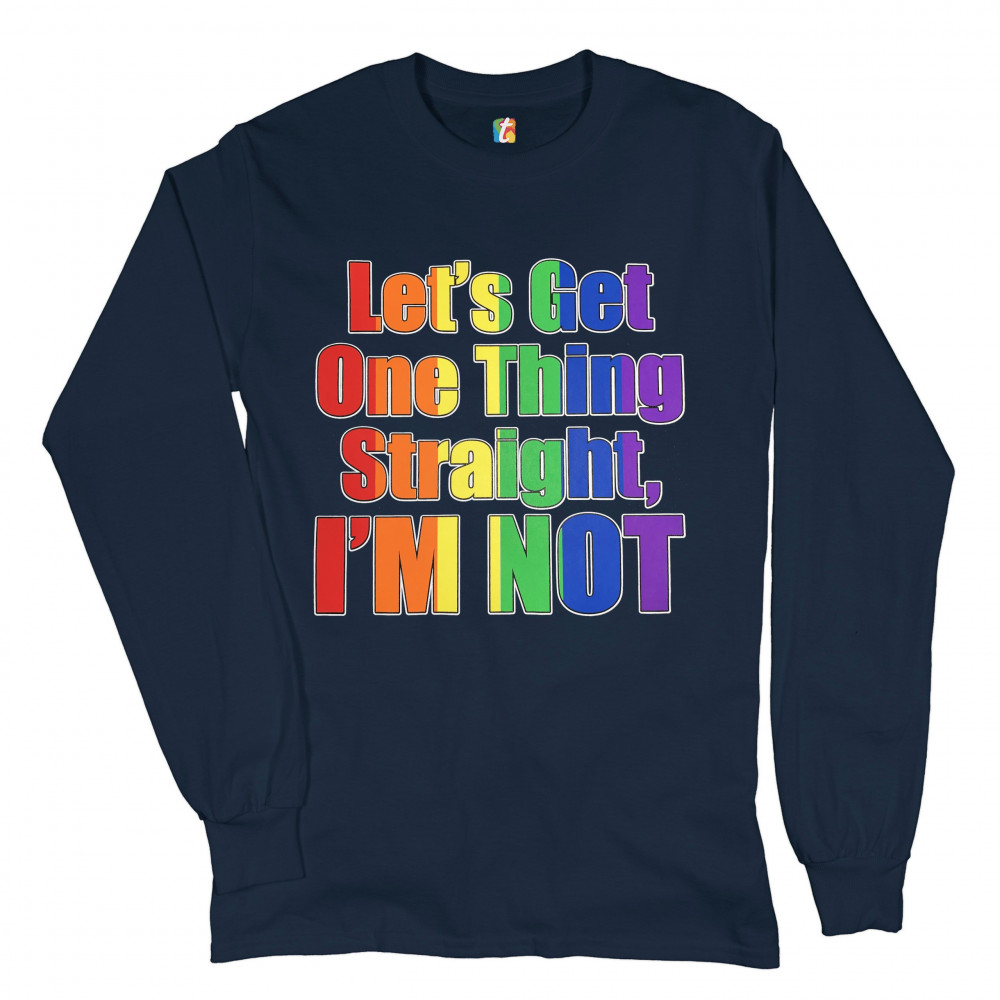 LET'S GET ONE THING STRAIGHT, I'M NOT long sleeve t-shirt lgbt gay rainbow navy blue