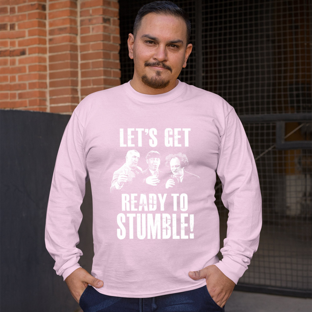 LET'S GET READY TO STUMBLE long sleeve t-shirt the three stooges funny vintage pink