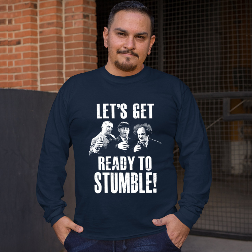 LET'S GET READY TO STUMBLE long sleeve t-shirt the three stooges funny vintage navy blue