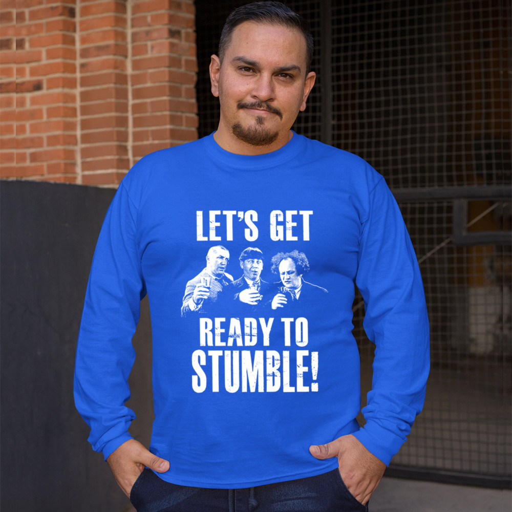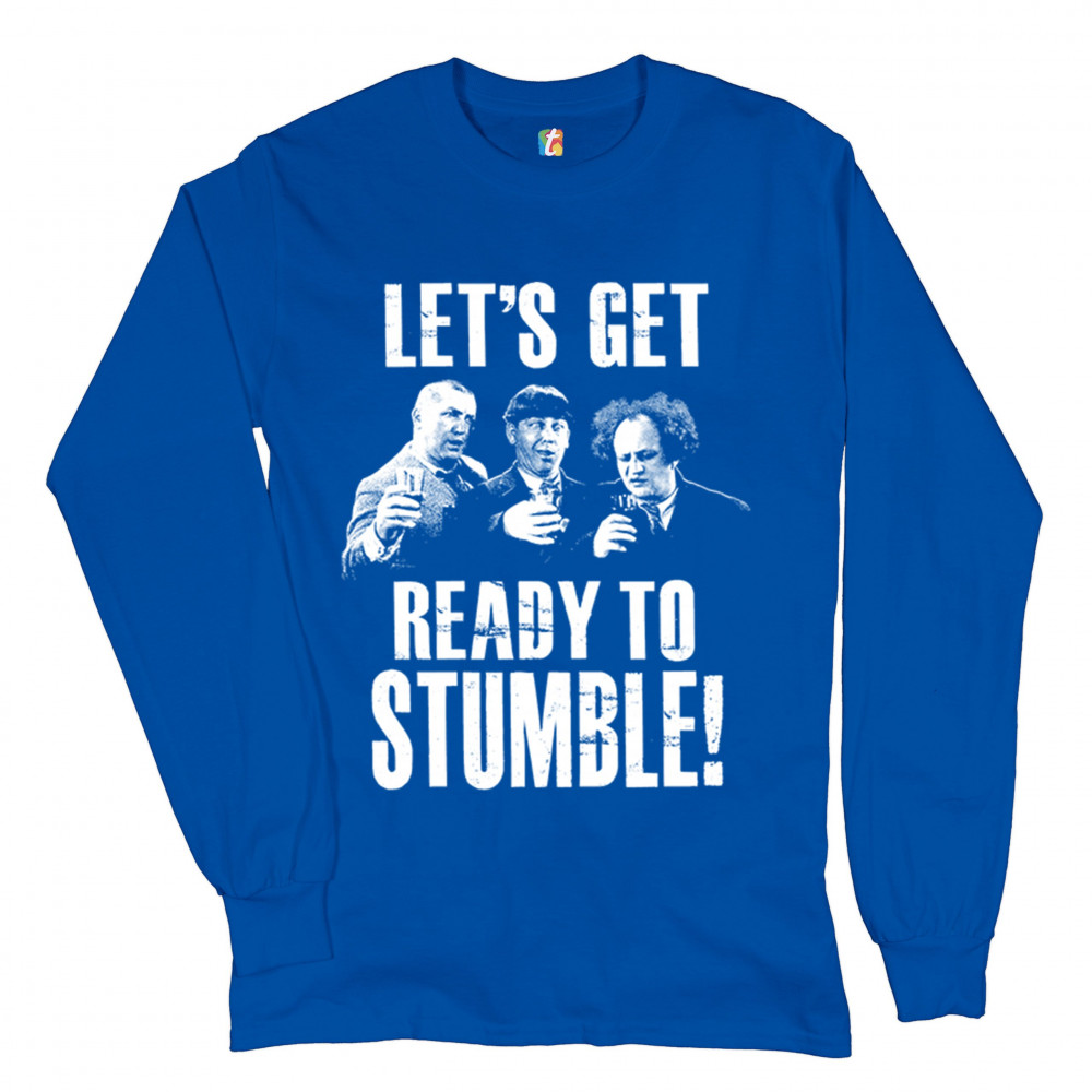 LET'S GET READY TO STUMBLE long sleeve t-shirt the three stooges funny vintage royal blue