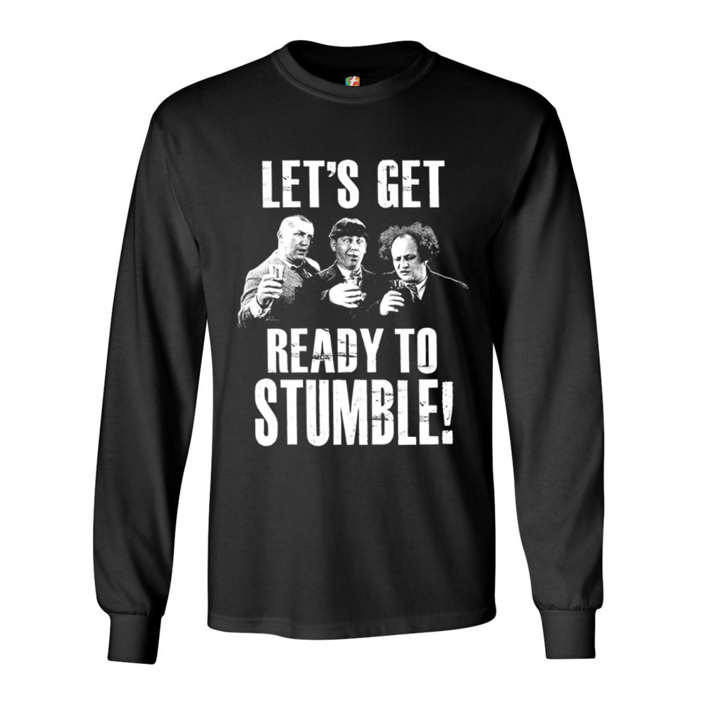 LET'S GET READY TO STUMBLE long sleeve t-shirt the three stooges funny vintage black