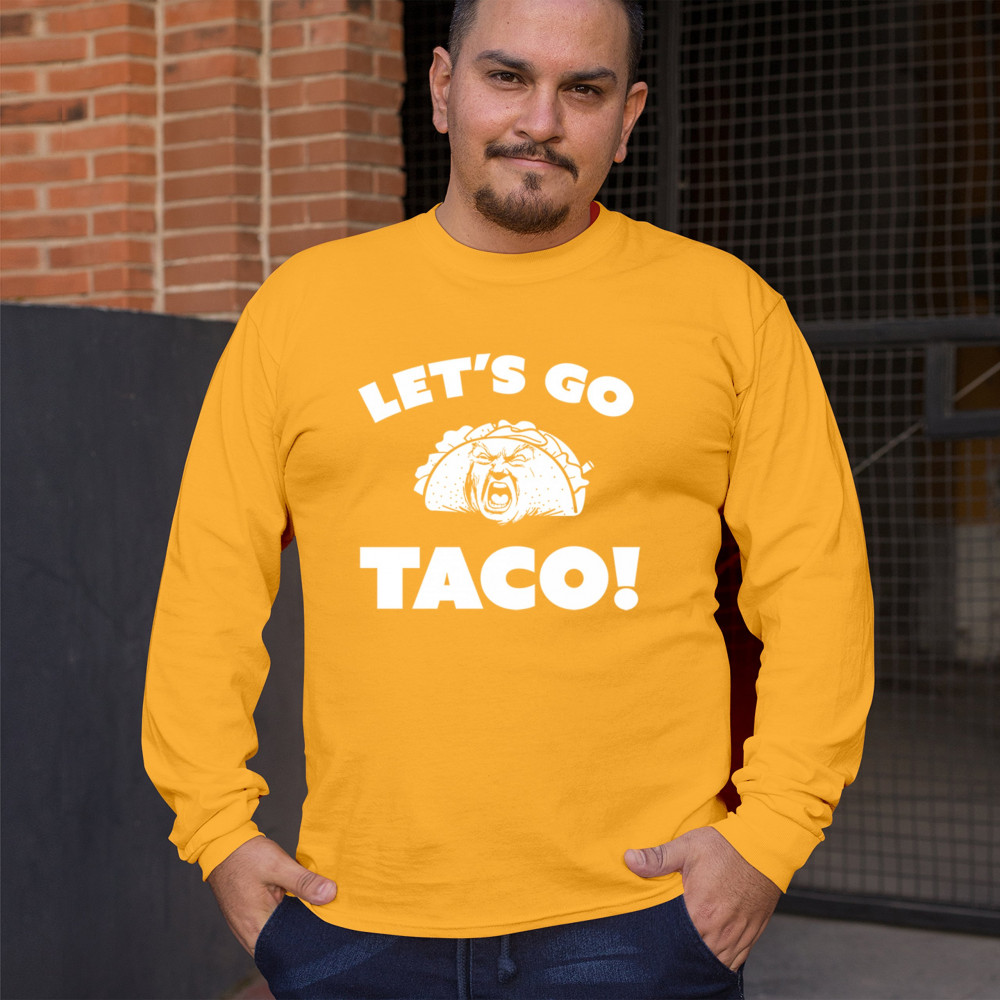 Let’s Go TACO means Trump Always Chickens Out—a bold protest design mocking cowardice, cult politics, and authoritarian fanboys.