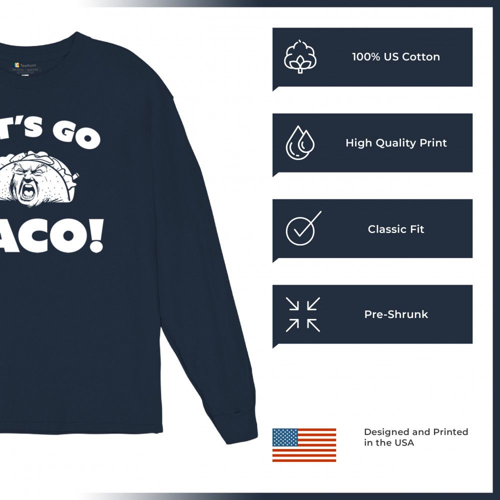 Let’s Go TACO—Trump Always Chickens Out—delivers anti-Trump satire and Gen Z political humor in one brutal protest meme shirt. This satirical protest wear mocks cowardice, anti-cult politics, and authoritarian worship while pushing political resistance fashion. A perfect liberal activism tee and democratic movement shirt for anyone who believes in the no kings design philosophy.