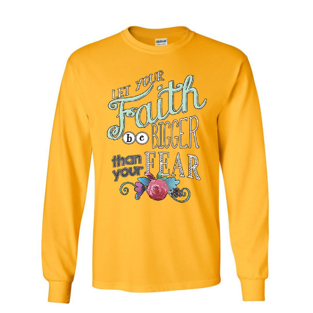 LET YOUR FAITH BE BIGGER long sleeve t-shirt inspiration god religion bible tee yellow