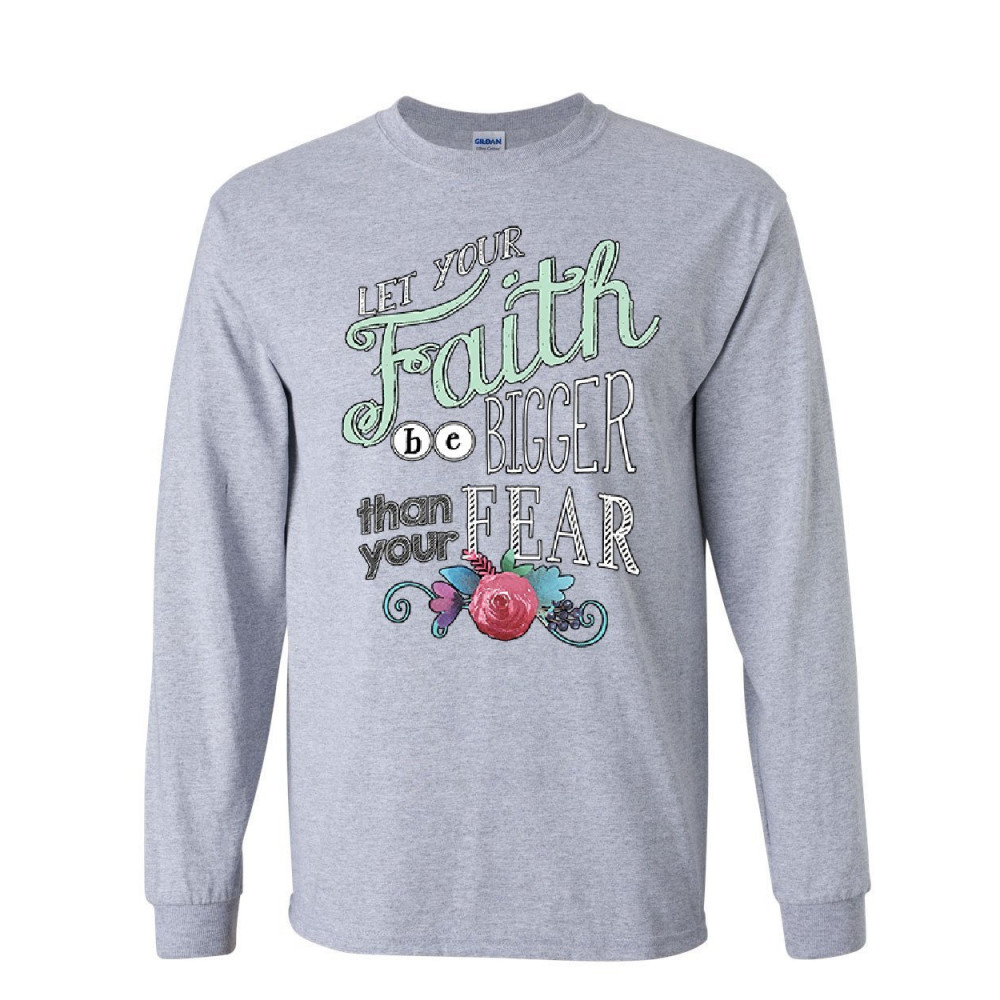 LET YOUR FAITH BE BIGGER long sleeve t-shirt inspiration god religion bible tee gray