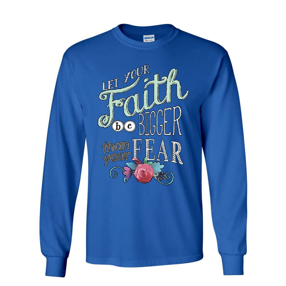 LET YOUR FAITH BE BIGGER long sleeve t-shirt inspiration god religion bible tee royal blue