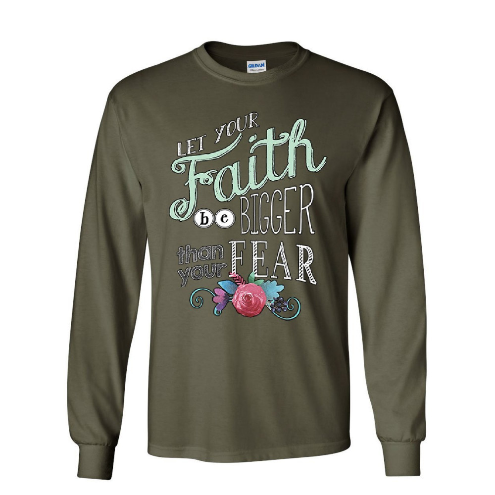 LET YOUR FAITH BE BIGGER long sleeve t-shirt inspiration god religion bible tee military green