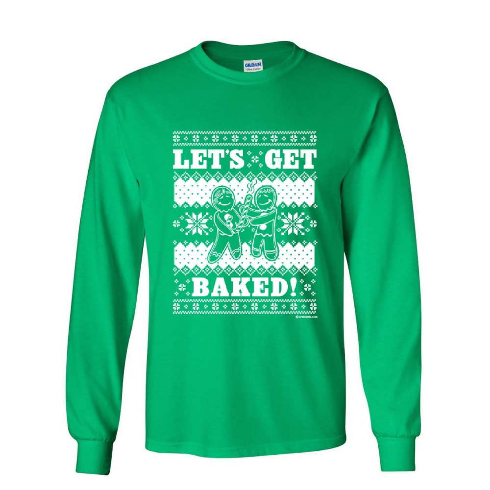 LET'S GET BAKED 420 long sleeve t-shirt ugly sweatshirt christmas tee green