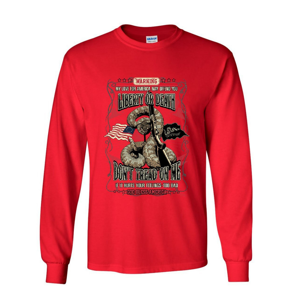 LIBERTY OR DEATH DON'T TREAD ON ME long sleeve t-shirt gadsden flag america tee red