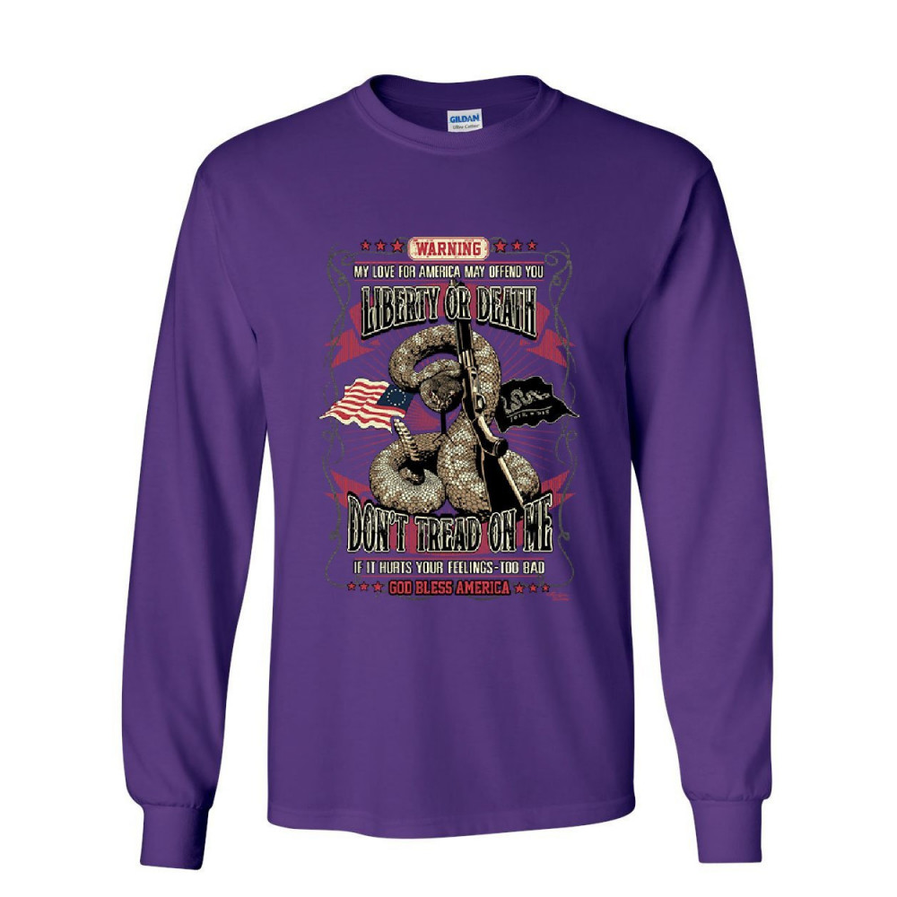 LIBERTY OR DEATH DON'T TREAD ON ME long sleeve t-shirt gadsden flag america tee purple