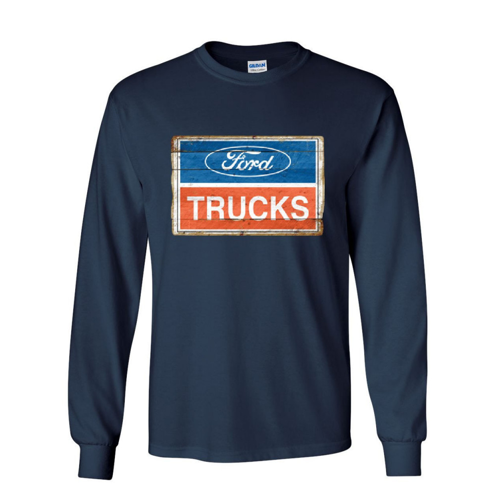 FORD TRUCKS OLD SIGN long sleeve t-shirt licensed ford built tough navy blue