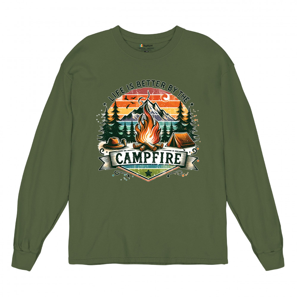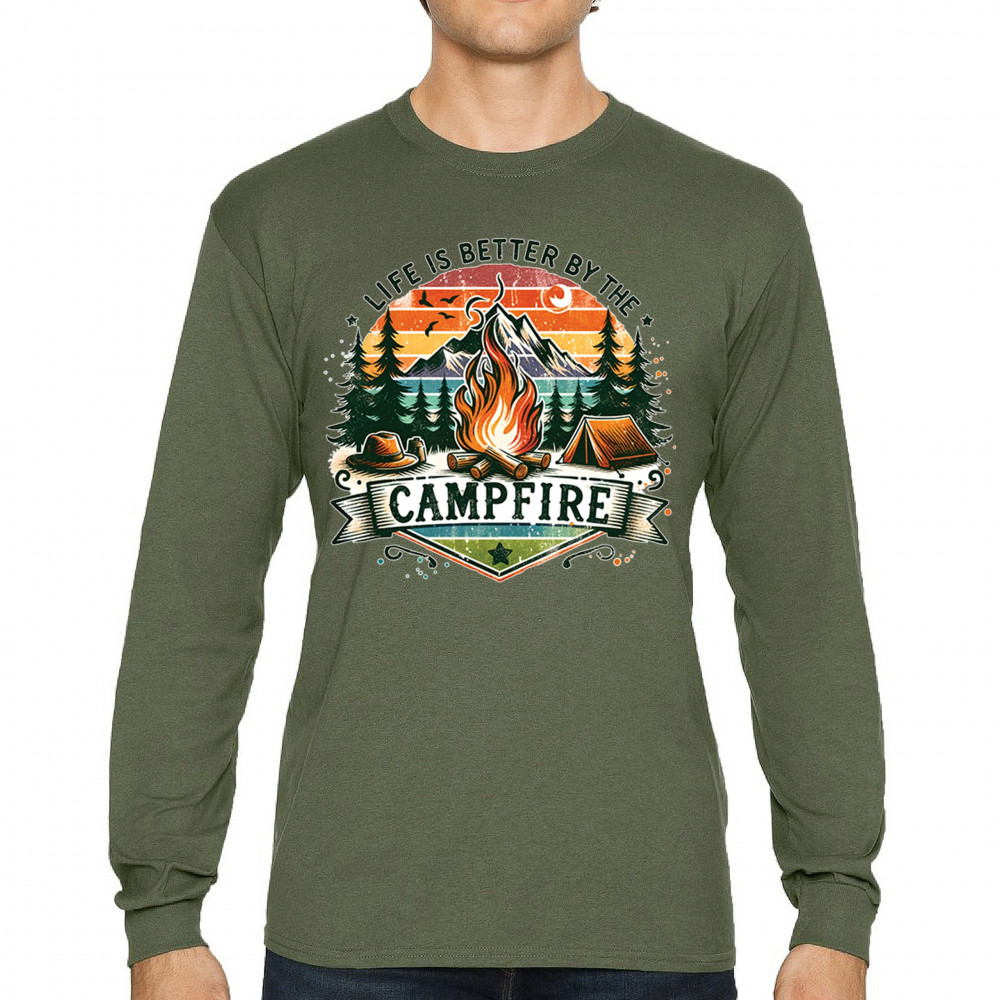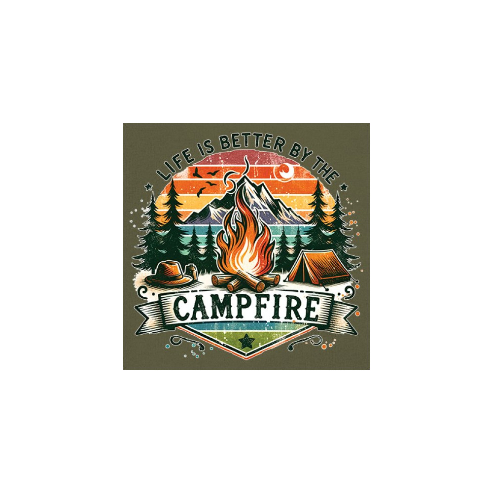 Life is Better by the Campfire brings rustic charm and outdoor adventure together with a glowing fire, mountain scenery, and pine forest. Ideal for forest lovers, campers, and national park explorers, this design evokes wilderness vibes, tent life, and the thrill of travel. Great value for anyone who believes adventure begins under the stars.